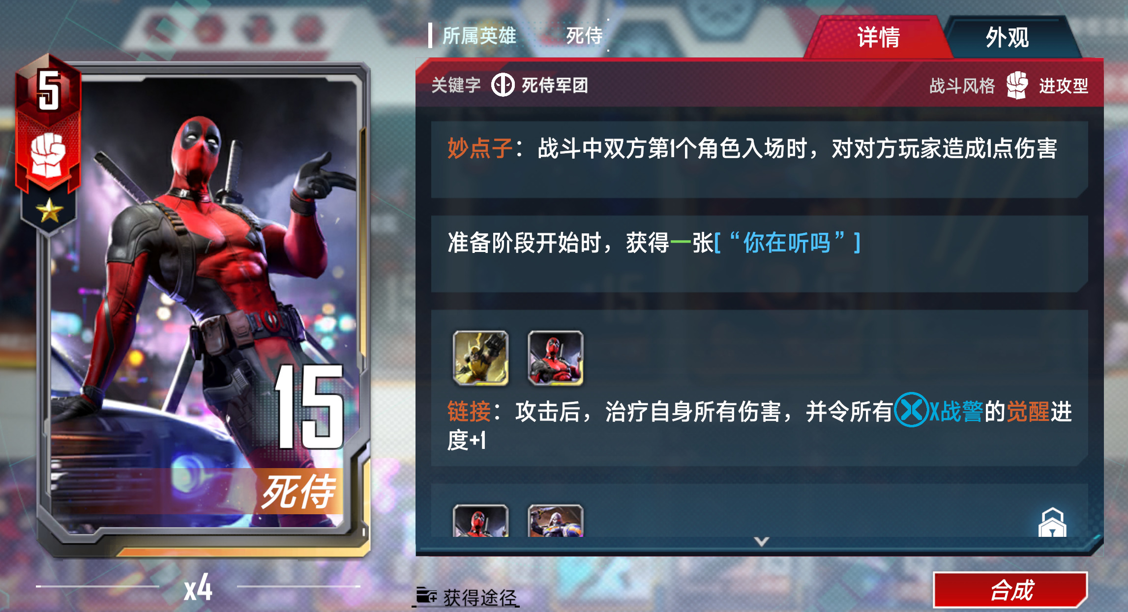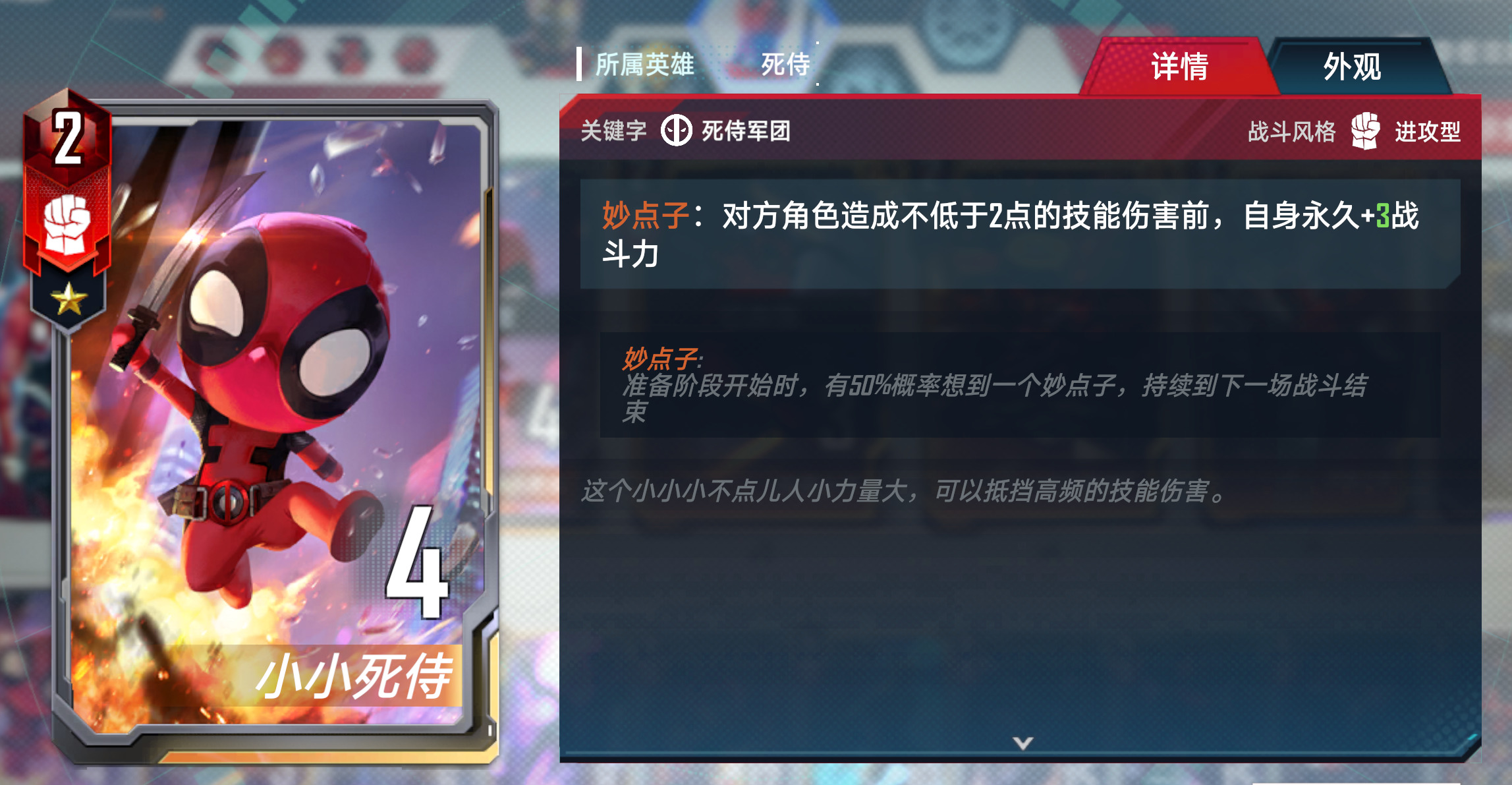 4、红死侍为次核心,后期都是红点子。第二个关键是妙点子内战,1点血伤害,后期也能耗死很多人。
