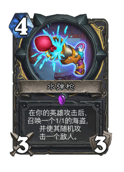 在你的英雄攻击后,召唤一个1/1的海盗,并使其随机攻击一个敌人。