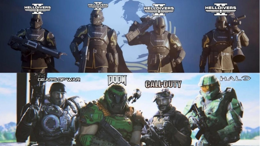 不难看出《地狱潜兵2》参考了电影《星河战队》,而《星河战队》又改编自《星船伞兵》,《星船伞兵》可以说是Xbox玩家心中的白月光,其微软曾经的当家IP《光环》和《战争机器》的灵感绝大部分都来源于此。