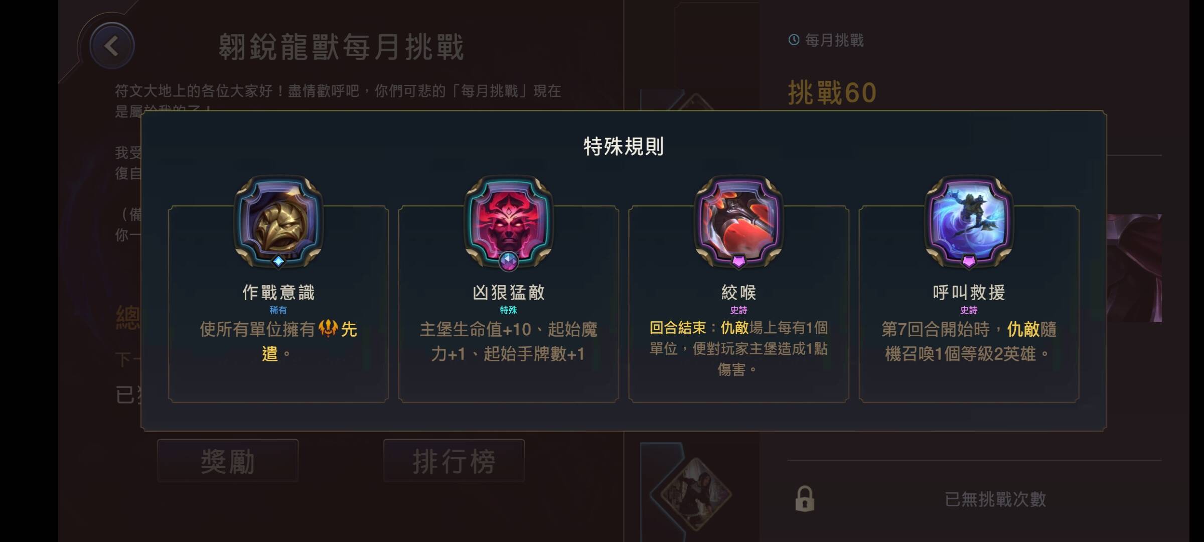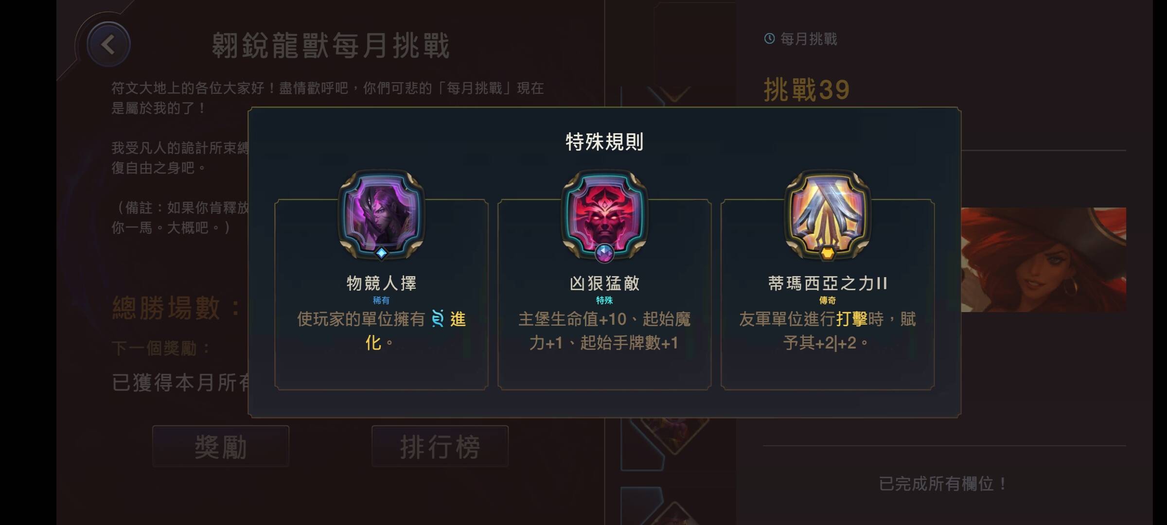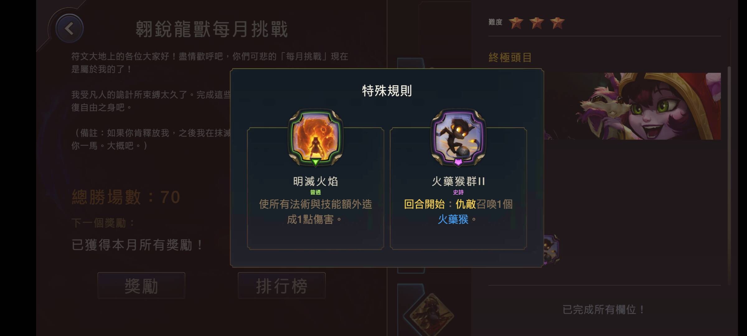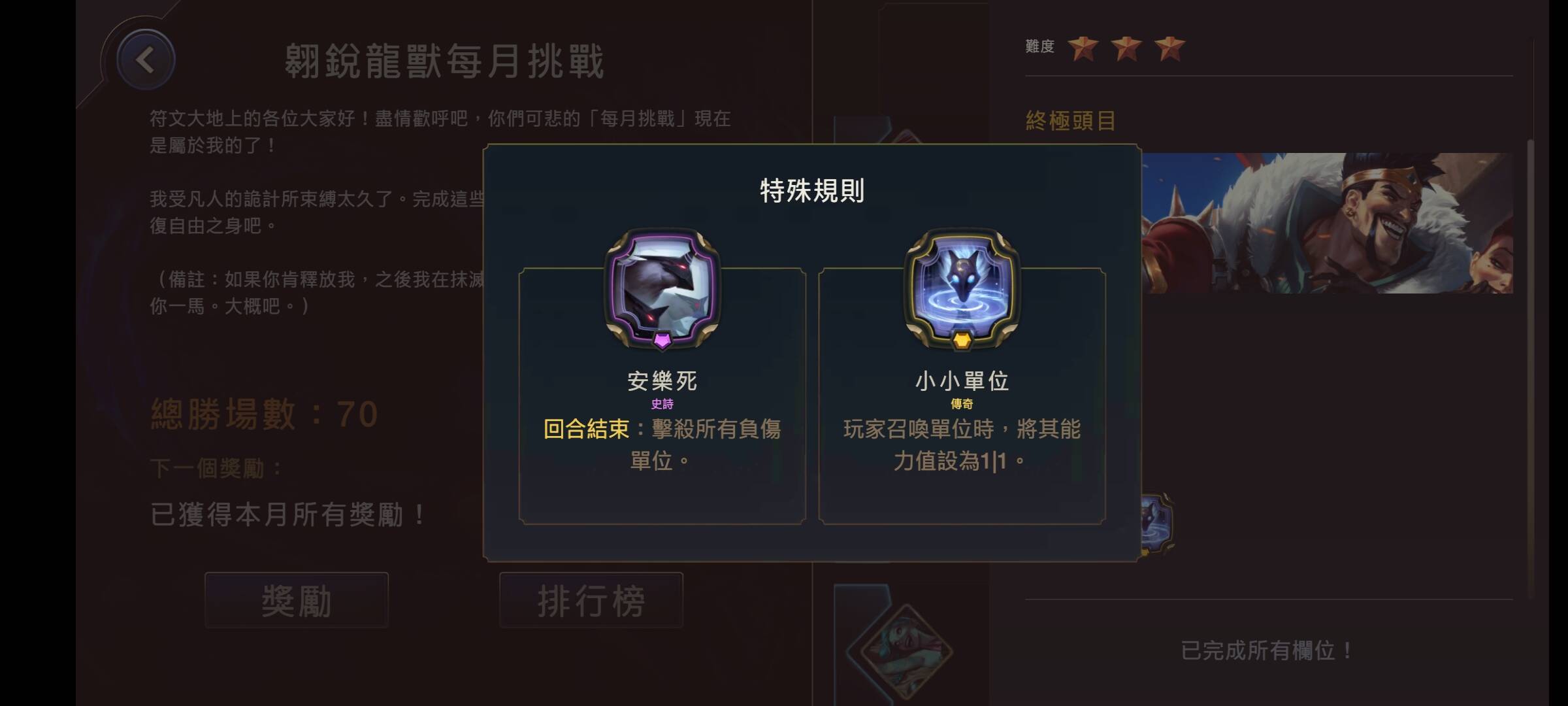 这个月的压力上的格外的早,你很难想象第18关就能出现巨神峰ez+刀妹的极品组合,看见巨神峰ez必须要尊重一下。回合开始的回蓝能让一些英雄用起来比较舒服,比如德邦兄妹。群友还推荐了狗熊,但我还没练。