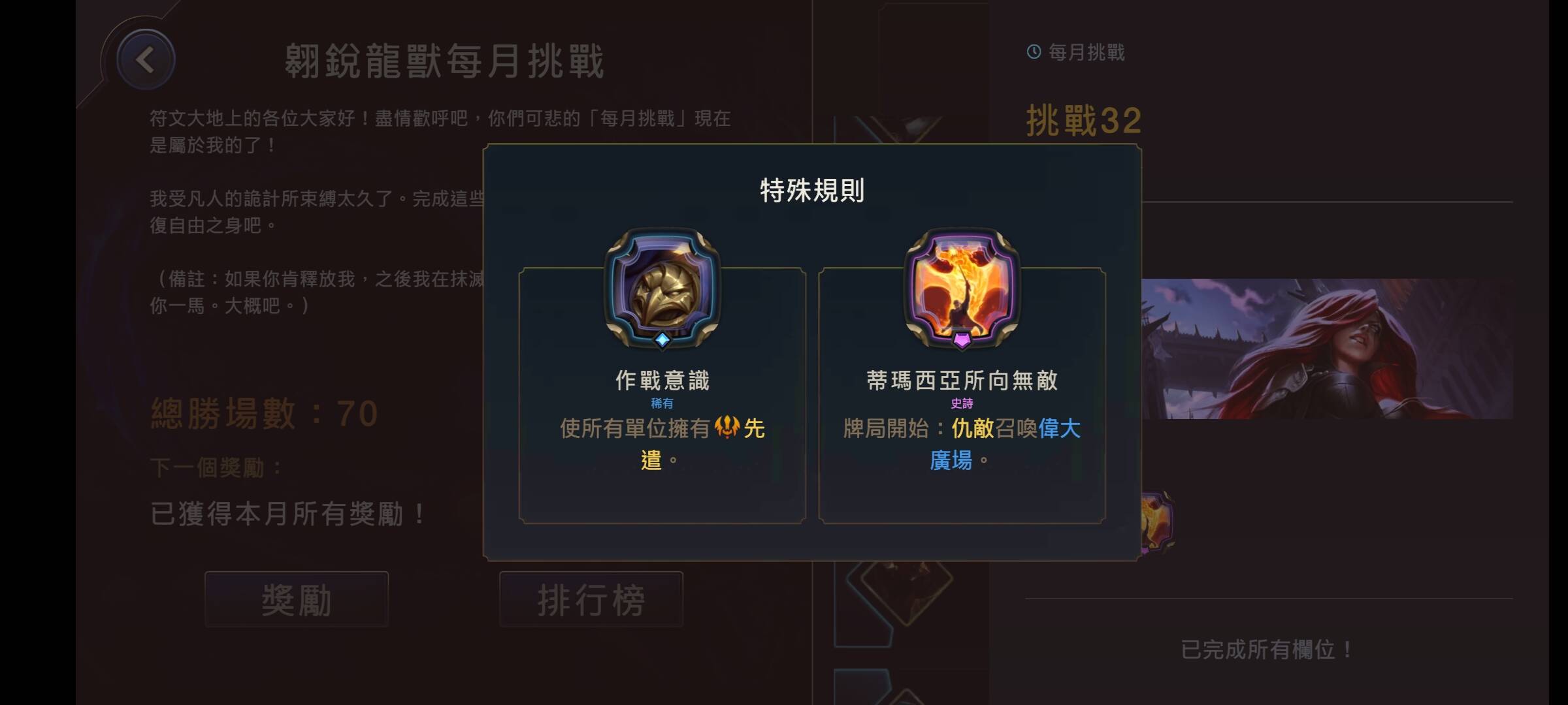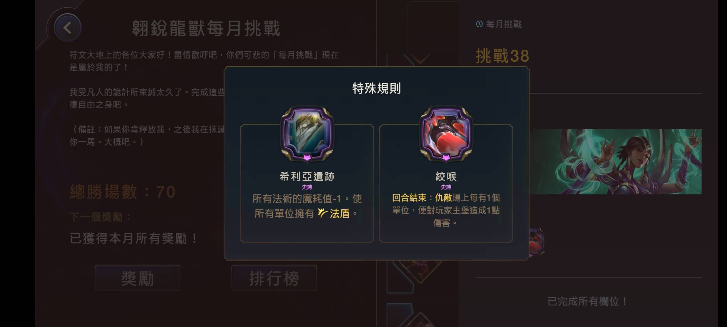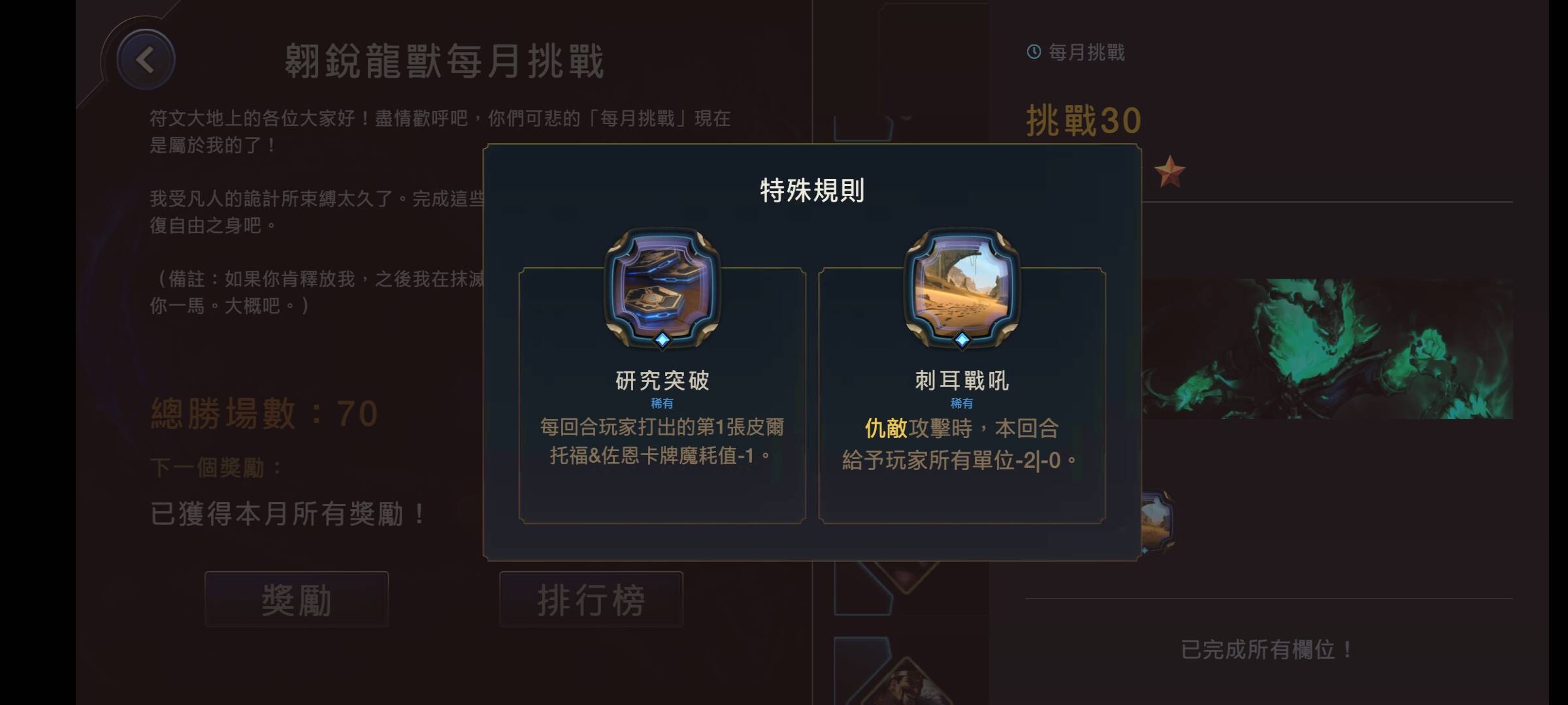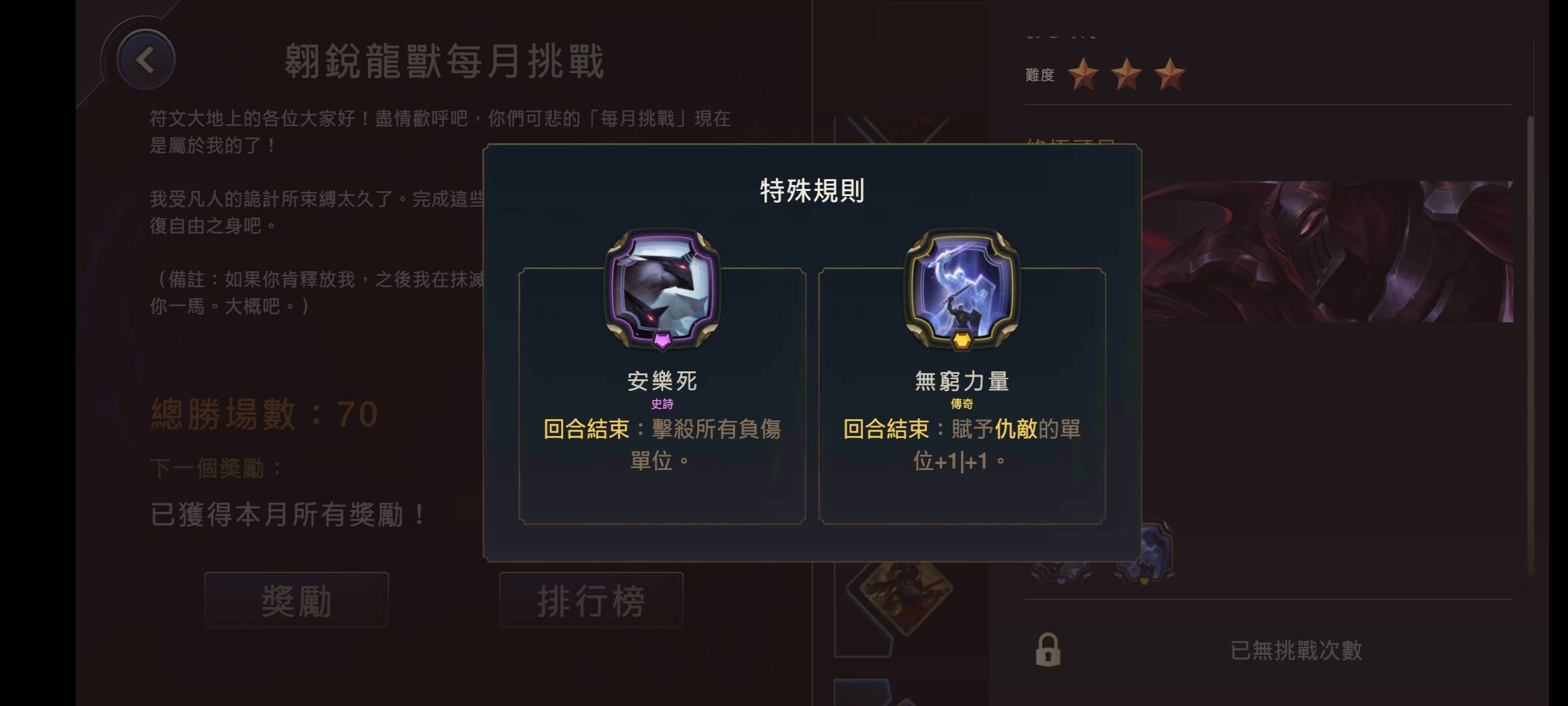 这个月的压力上的格外的早,你很难想象第18关就能出现巨神峰ez+刀妹的极品组合,看见巨神峰ez必须要尊重一下。回合开始的回蓝能让一些英雄用起来比较舒服,比如德邦兄妹。群友还推荐了狗熊,但我还没练。