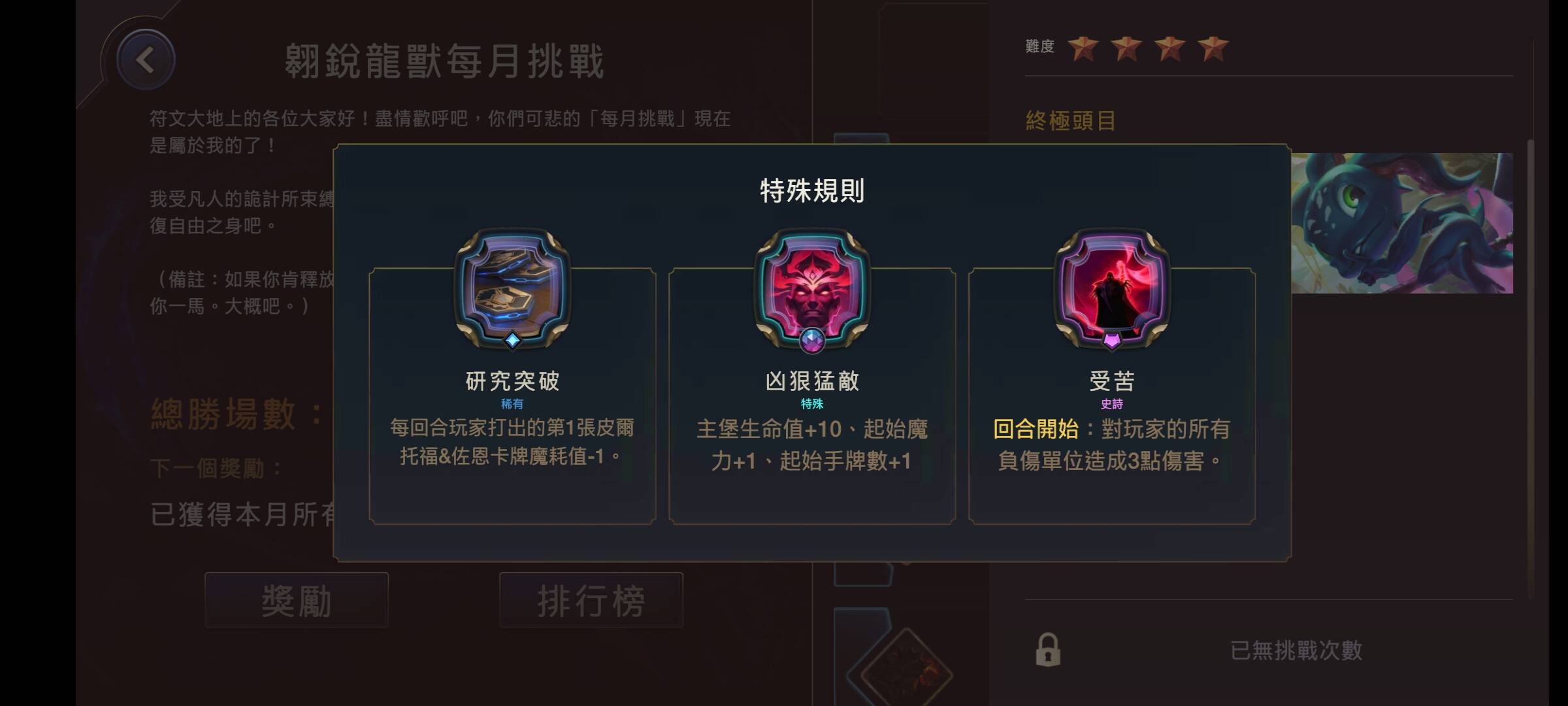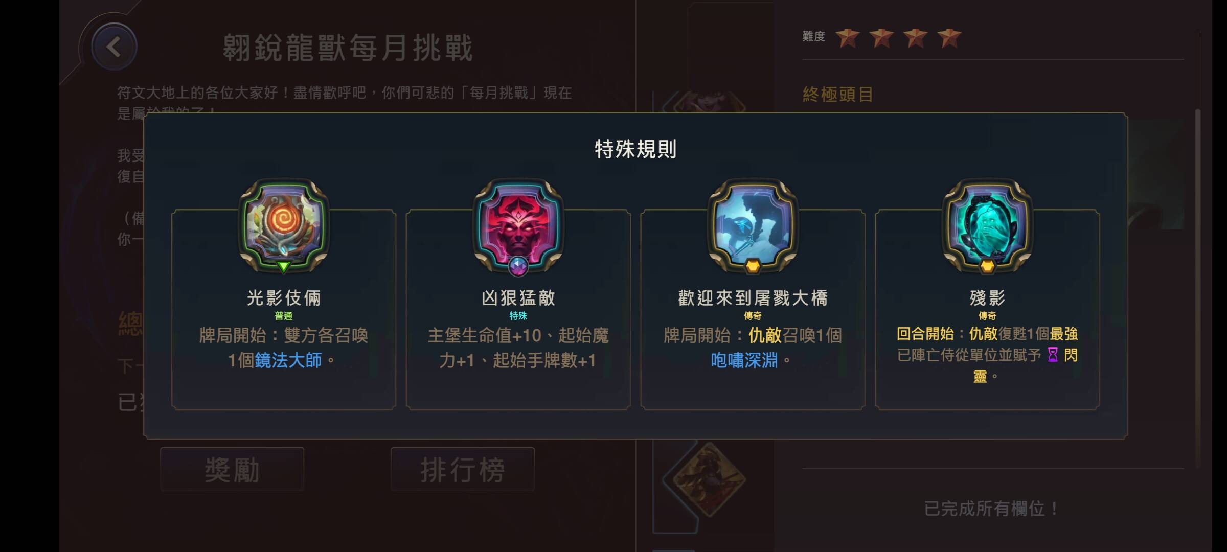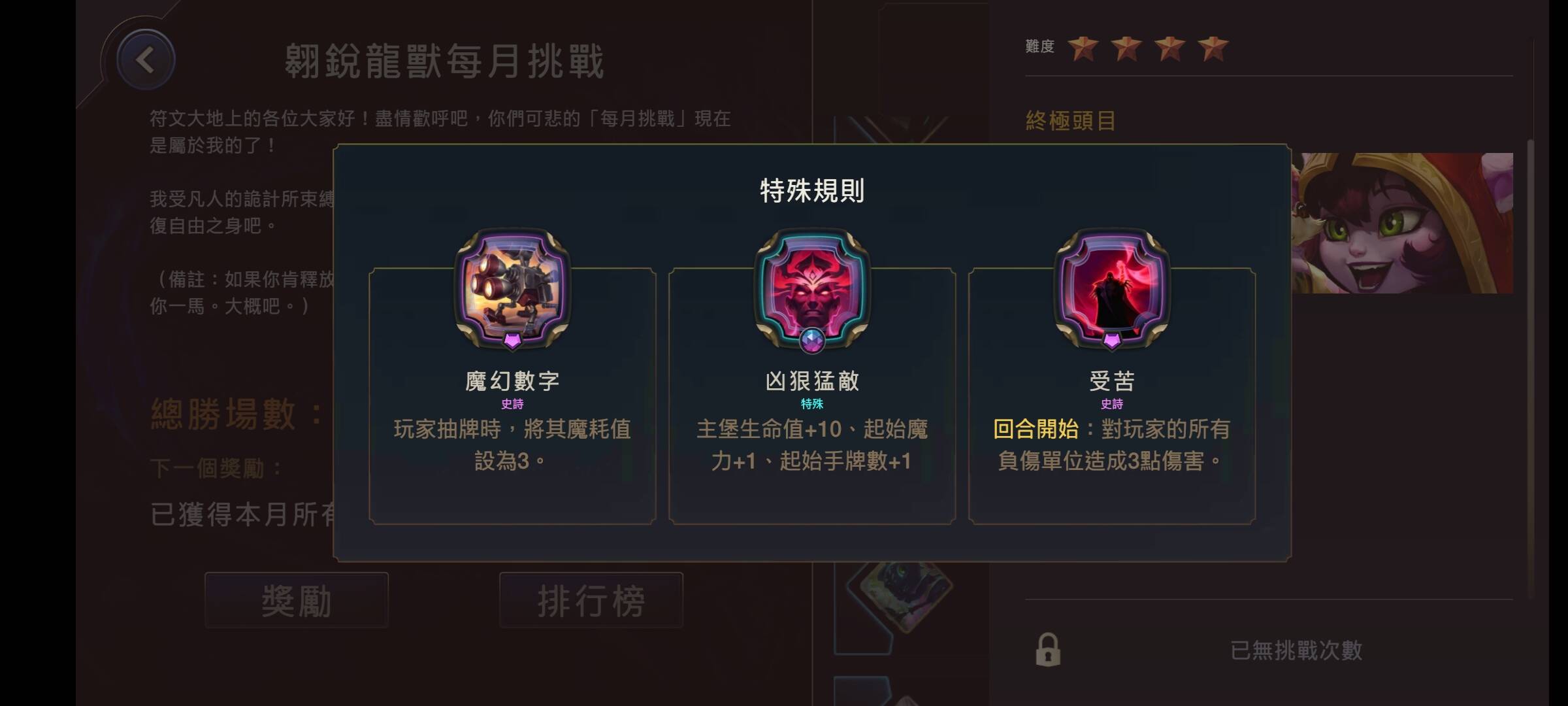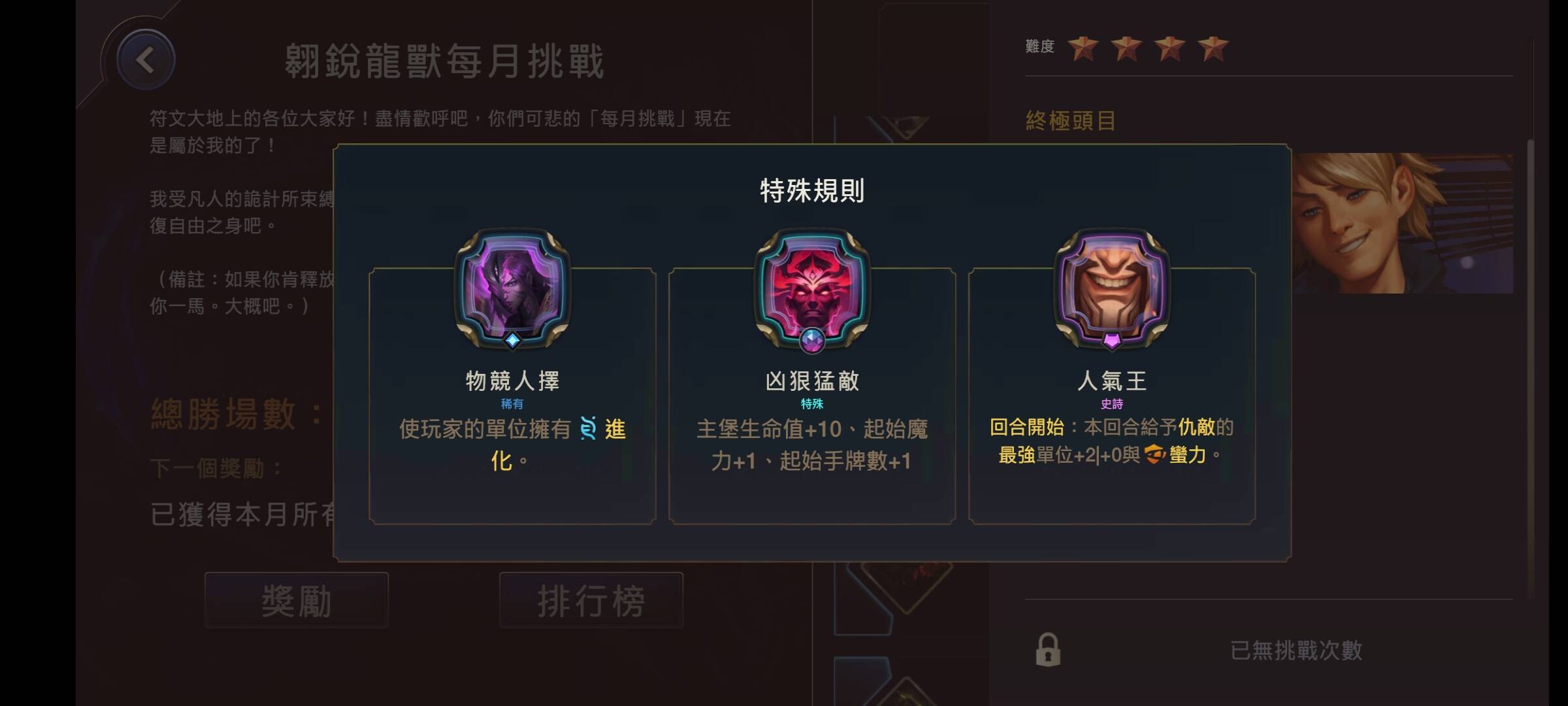 关卡四星,有着德玛能力,有一定压力。全员进化,带着星选的英雄好打,有布鲁尔的魄罗王也很轻松,另外卡莎是个骗局,别选。