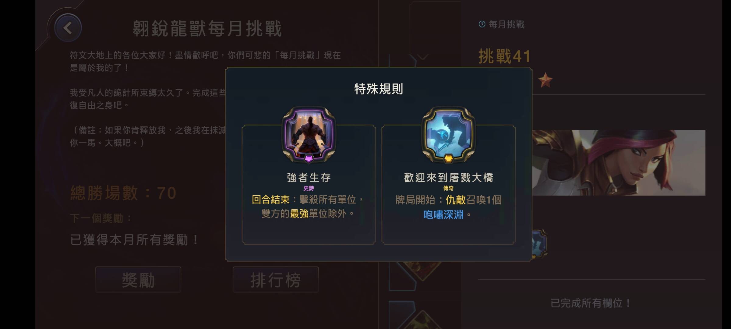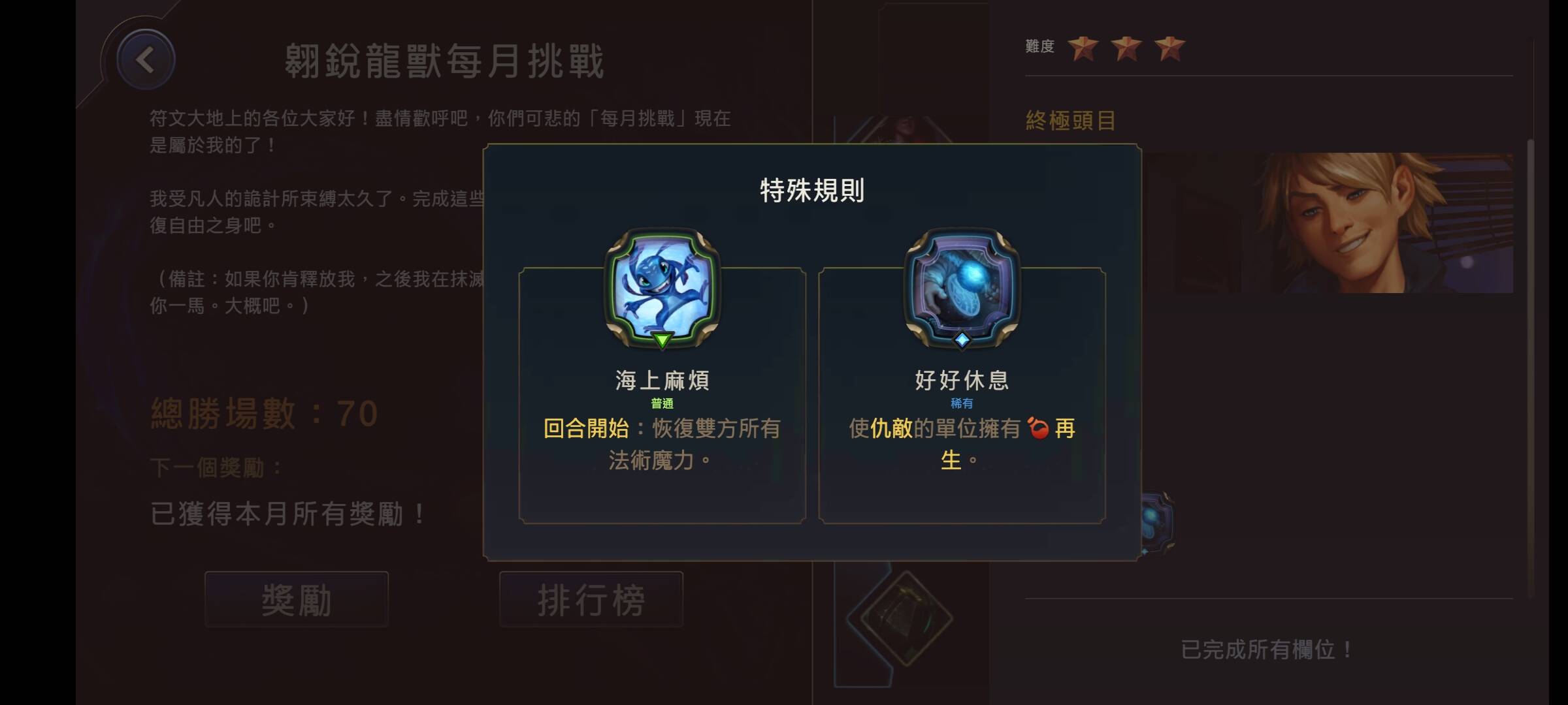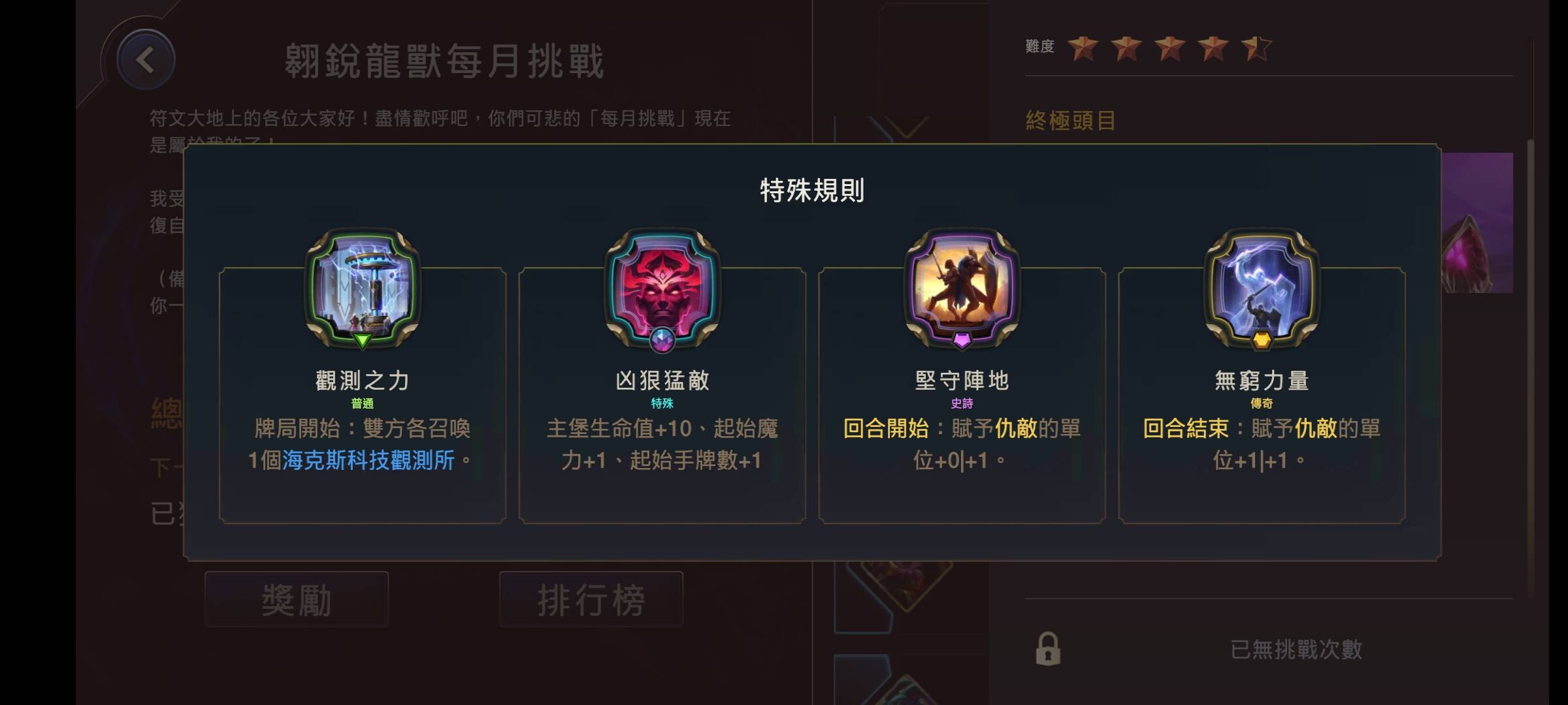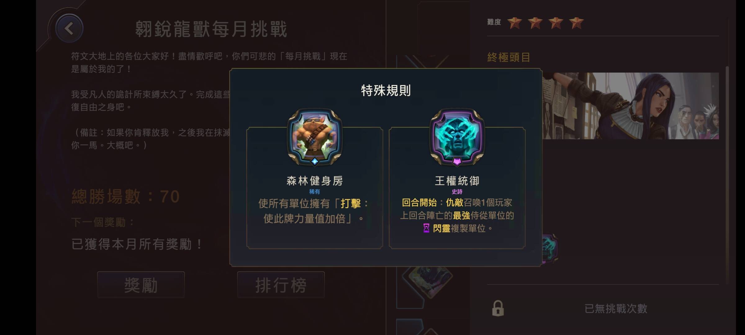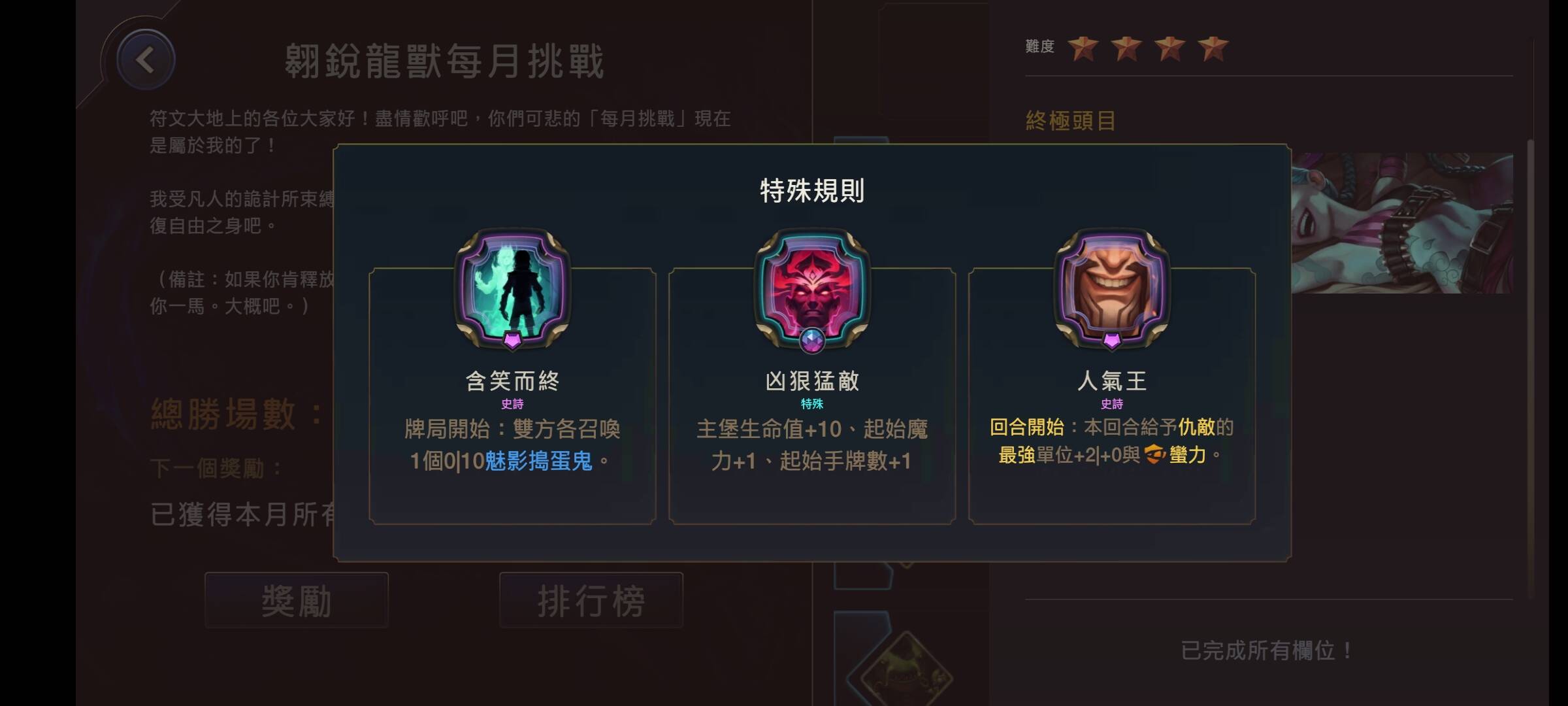 关卡四星,有着德玛能力,有一定压力。全员进化,带着星选的英雄好打,有布鲁尔的魄罗王也很轻松,另外卡莎是个骗局,别选。