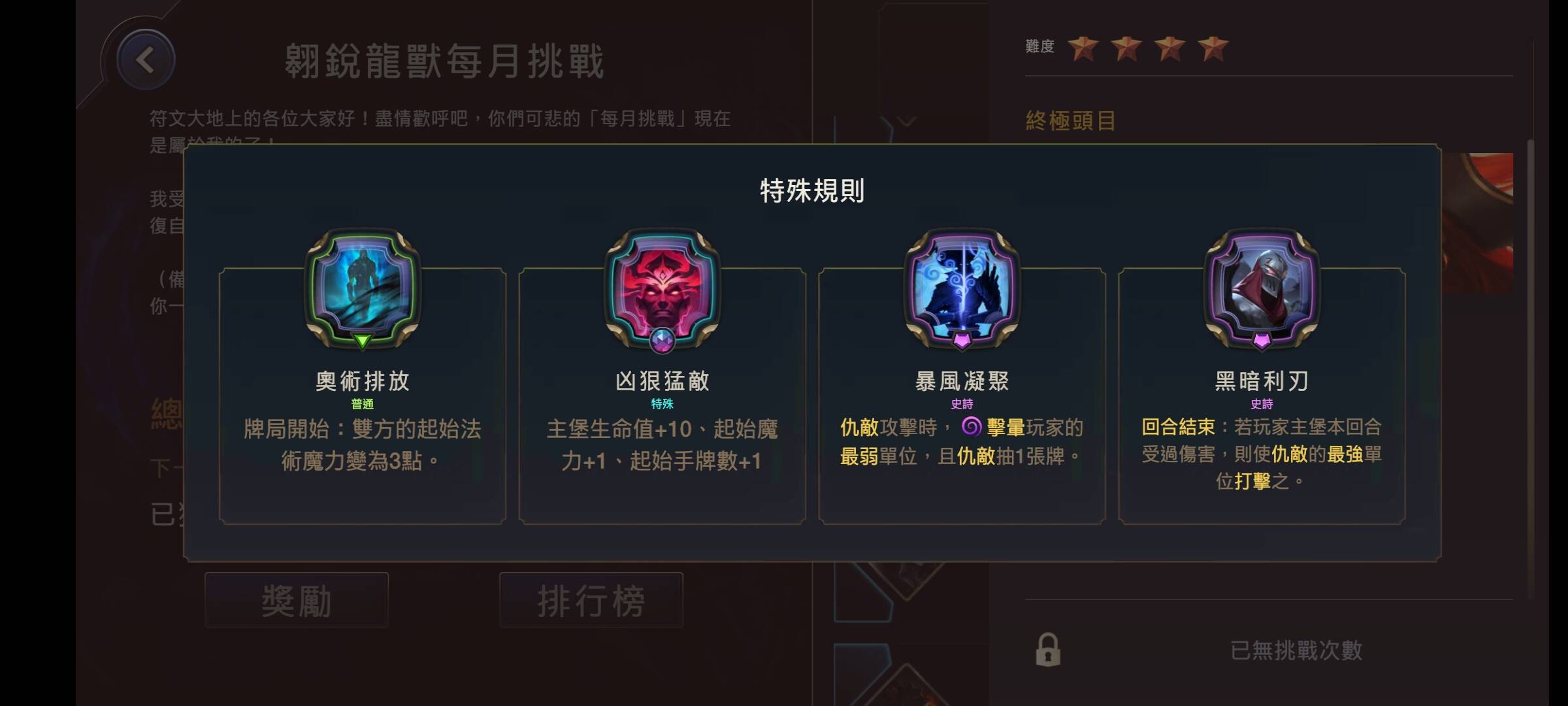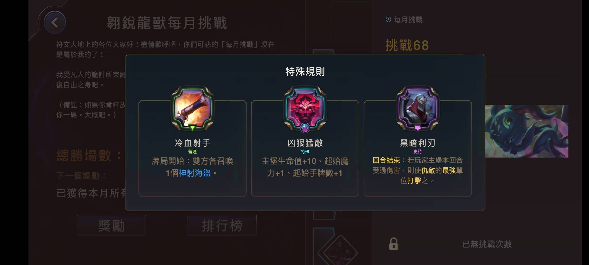 注意点:关卡能力的黑暗利刃和劫本身的黑暗利刃可叠加,所以回合结束会砍出两刀,喵呜就是倒在这里的。