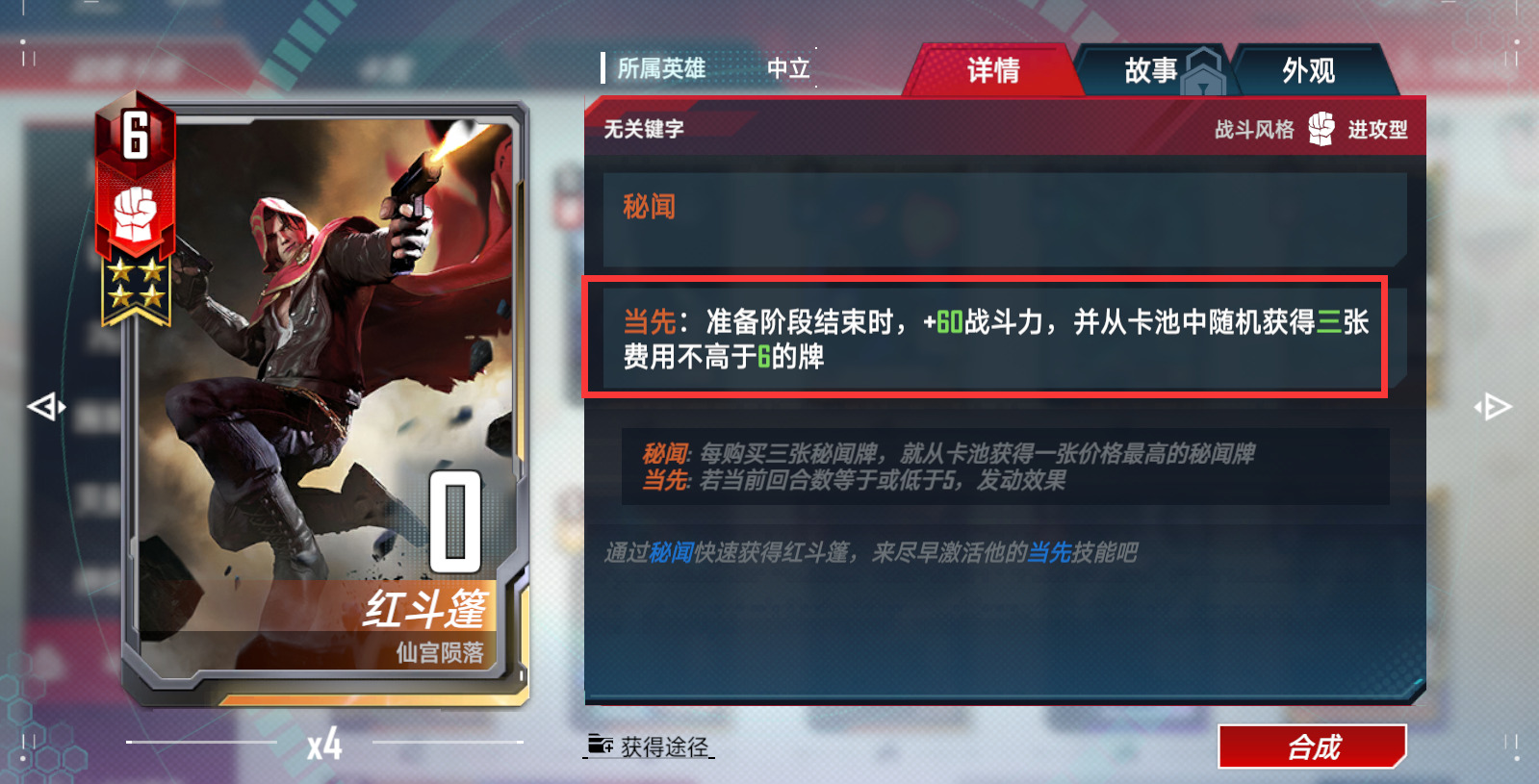 2、由于红斗篷的玩法大多数是第一回合就升级商店,所以第五回合准备阶段结束前,不论找到几张假面夫人,都会选择在0费升级到四级商店。