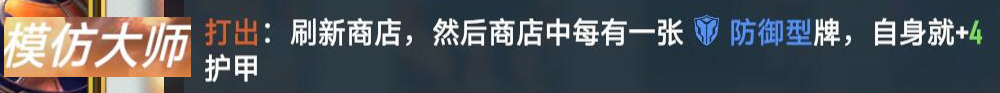 2、蛇锁有模仿大师,任何时候都是要优先打出模仿大师,如果商店有并肩作战,并且并肩不需要配合英雄责任使用的话,卖掉模仿大师,即可重新获得一张可以打出的模仿大师,从而再多次刷新,可以加快检索血魔组件的速度。注意,由于蛇锁防御卡浓度太低,模仿大师不会升星,都是卖一张打一张。