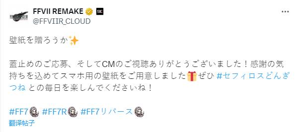 为了表达对玩家支持的谢意,“最终幻想7”官方在推特上免费推送了联动手机壁纸,是一张以萨菲罗斯为中心,并且手拿兵卫方便面的宣传图。