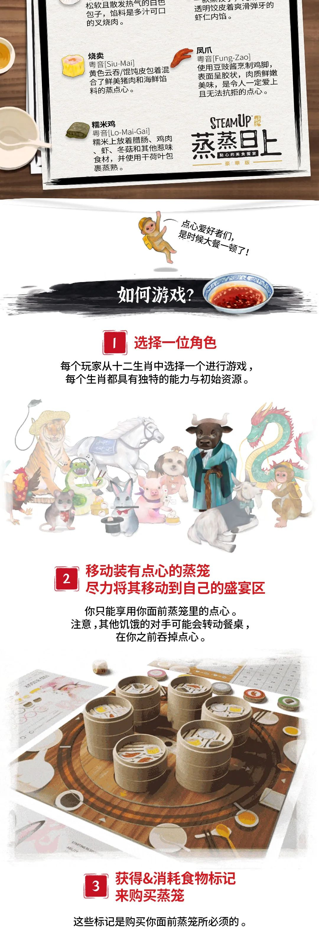 装满点心的蒸笼堆放在桌上,供玩家们轮流挑选。