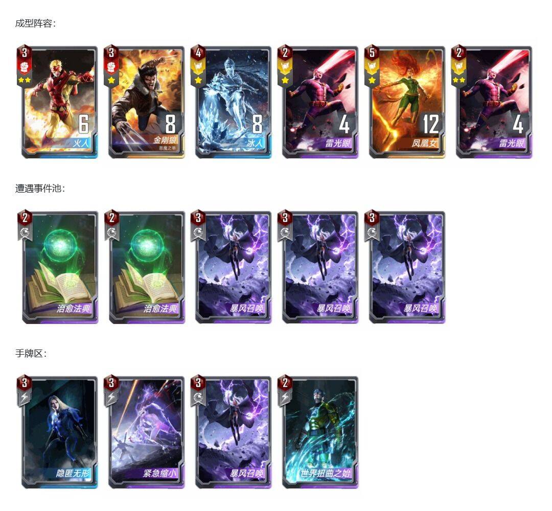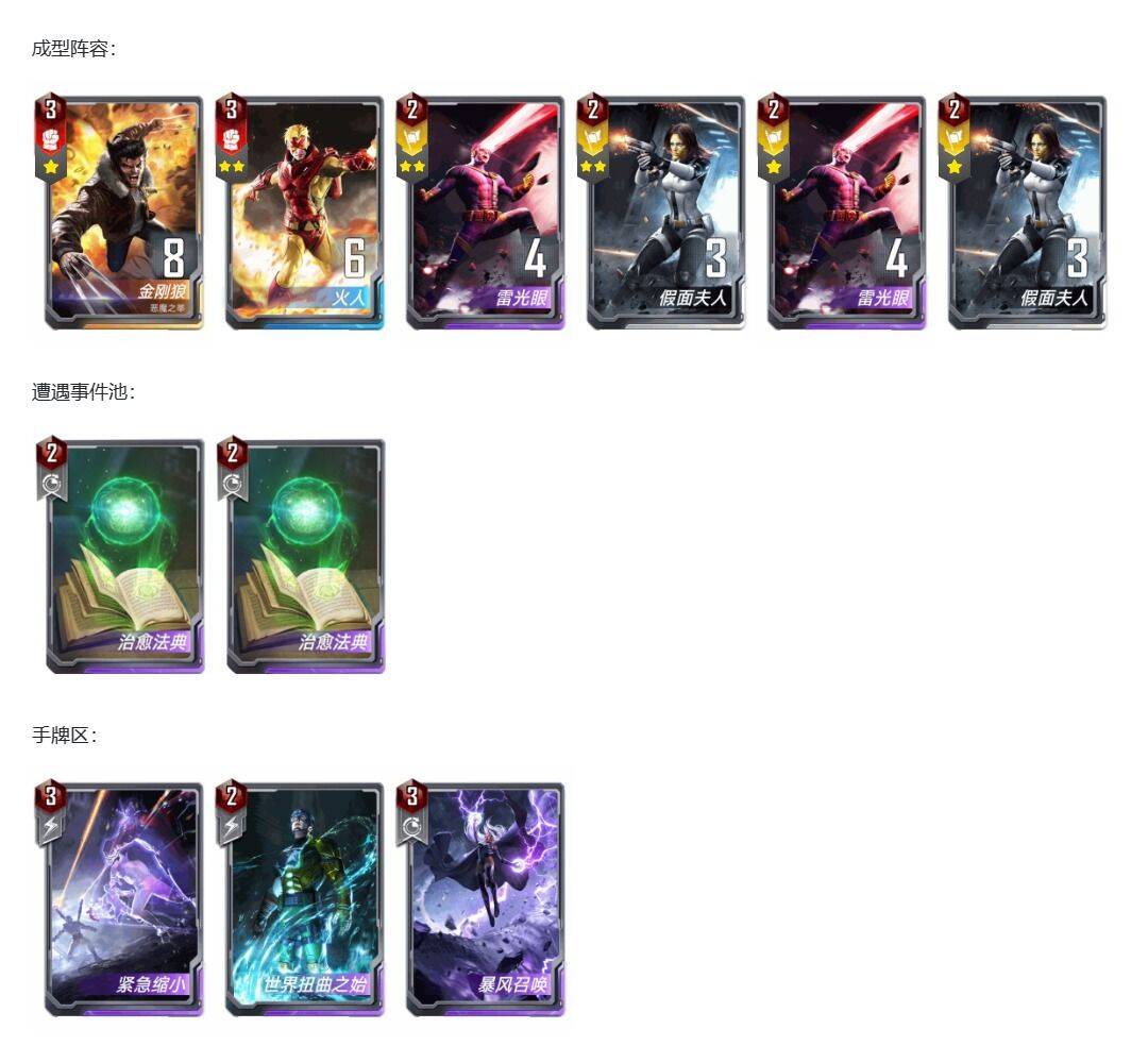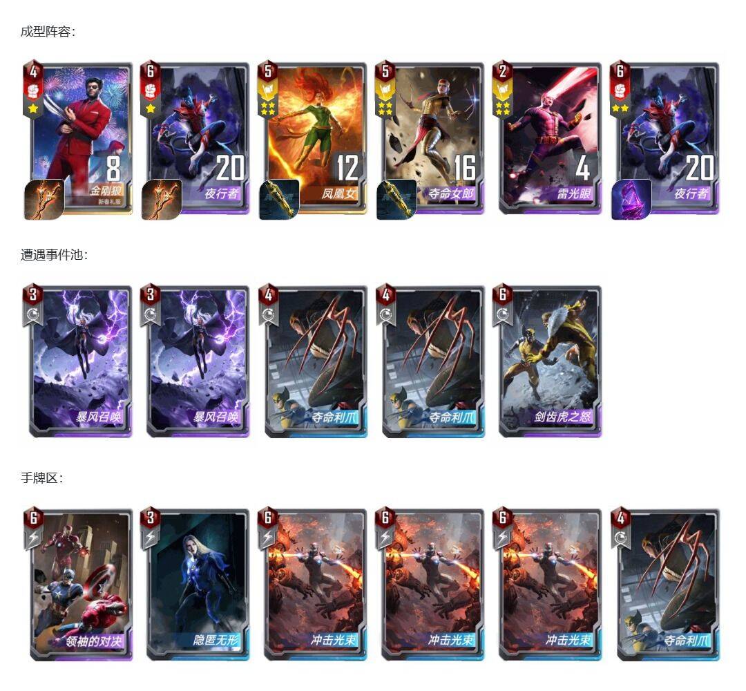 金钢狼:(天启四骑士)1张,多了卡手,会卡住x教授的感召,降低找到其他x战警核心牌的概率;偶尔配合暴风召唤拉人。