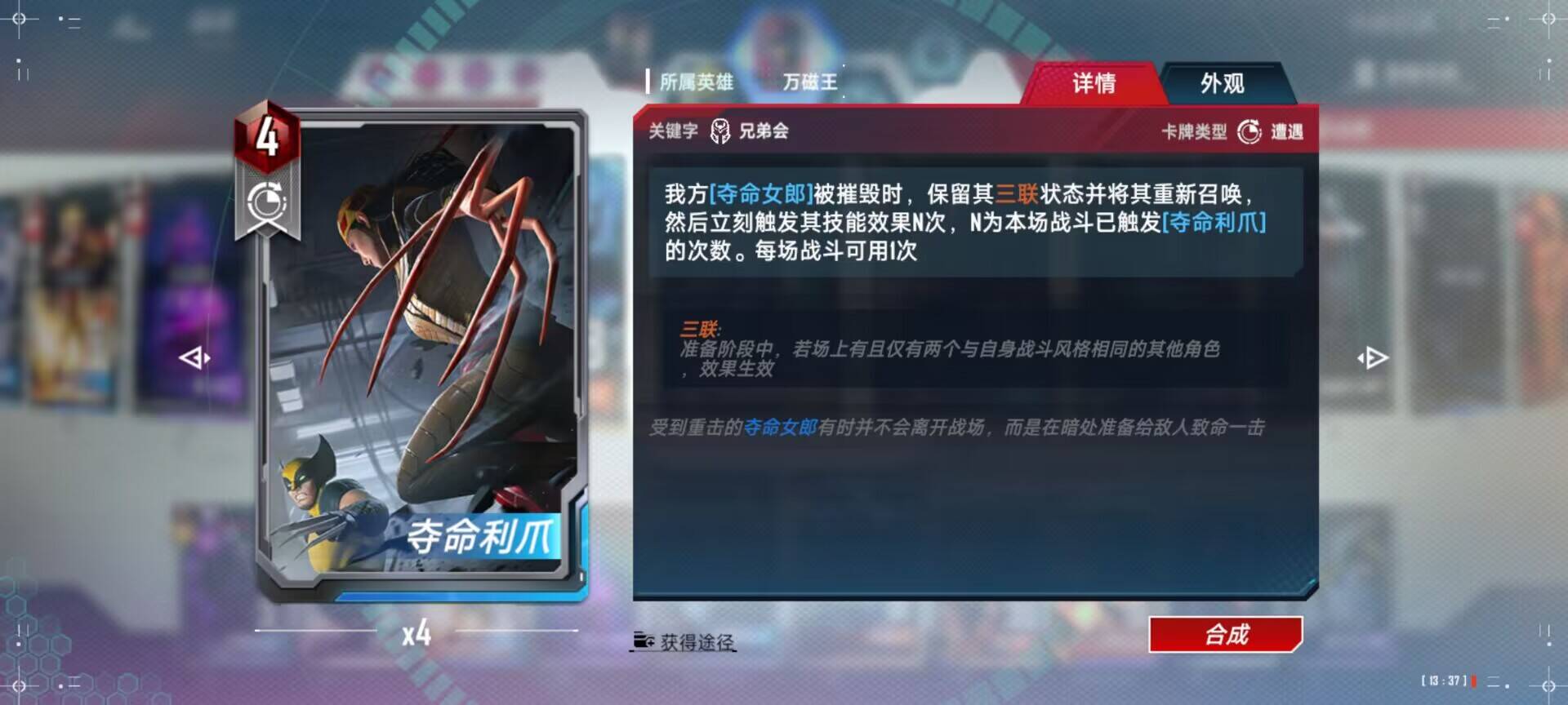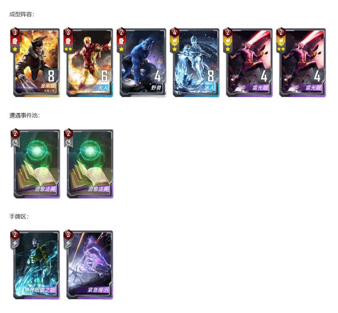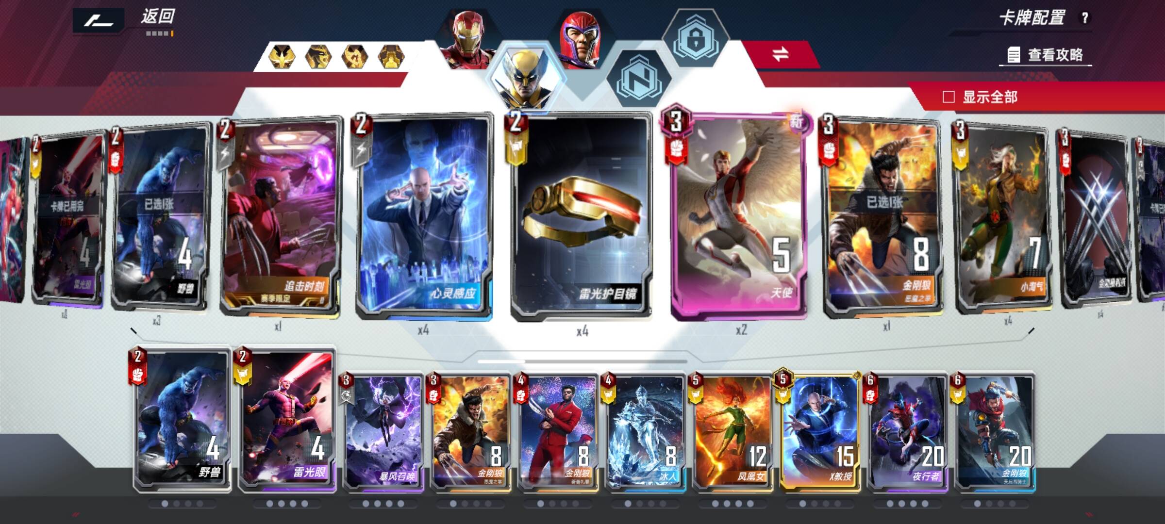 金钢狼:(天启四骑士)1张,多了卡手,会卡住x教授的感召,降低找到其他x战警核心牌的概率;偶尔配合暴风召唤拉人。