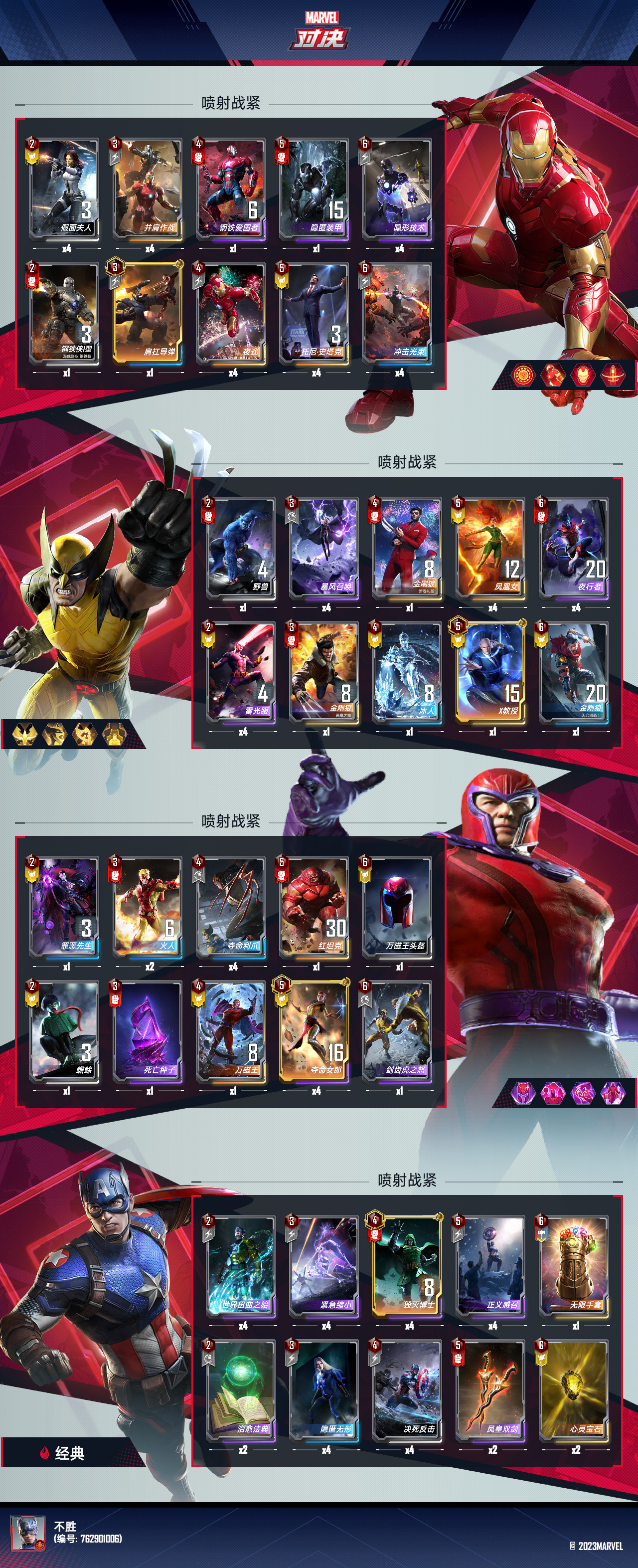 新春金钢狼:1-2张,多了卡手,会卡住x教授的感召,降低找到其他x战警核心牌的概率;打大身材时有用,比如小小死侍、白死、月骑黑豹等等;利用两个6费夜行者精准刺杀;大部分时候是爆发的薪材。