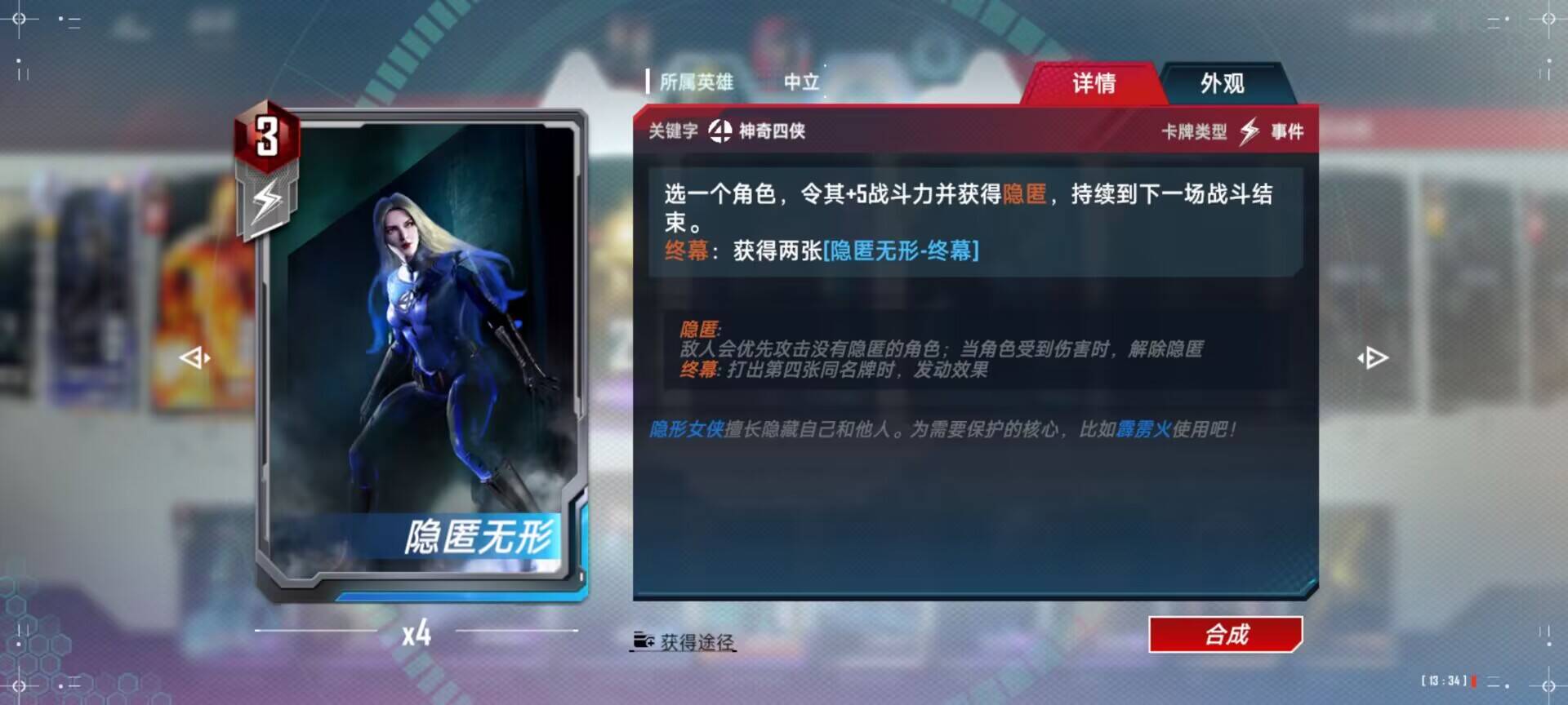 隐匿无形:4张,凑齐凤凰链接后,给镭射眼使用,使其可以活到最后,不会被开场秒杀;凑齐冰火人链接后,可以给火人使用,增加火人的生存率。