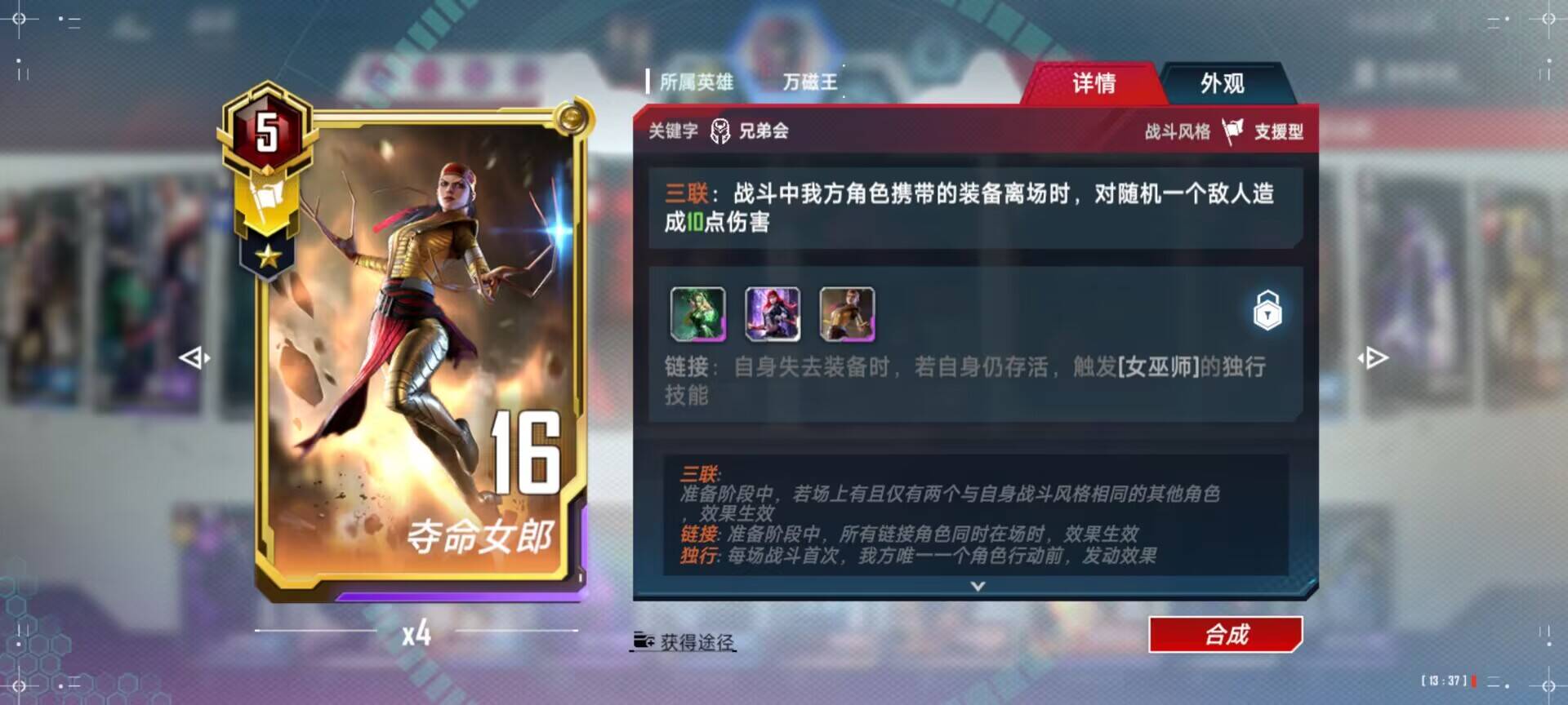 凤凰剑:2张,装给红队x战警角色,使其多次死亡,提高镭射眼技能伤害频率;有时双方同时清场后,我方多把剑,就多一分胜率。