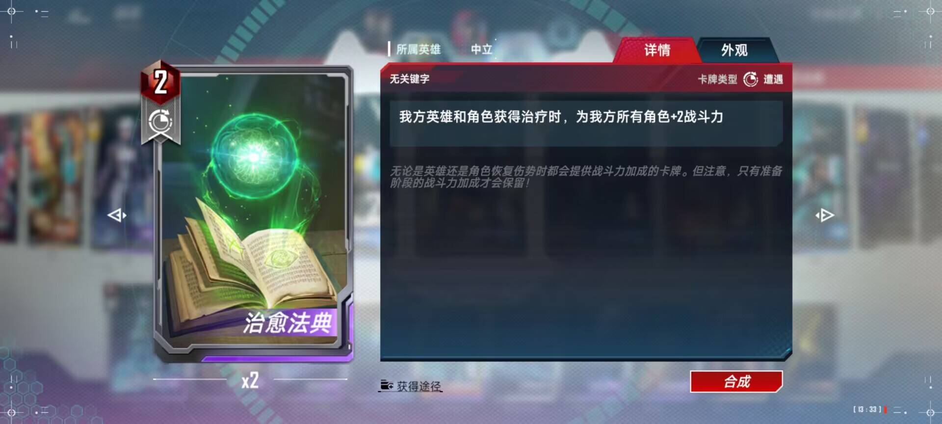 治愈法典:2张,2张够用了,少一张战力加不起来,多了会拖节奏,有时就亏在这2块钱上;配合假面夫人,为全队加攻,更好的渡过前期;配合3费金钢狼,前期狼叔动一下就能为全队加buff;配合决死反击,养大镭射眼,使其不再惧怕aoe伤害。遭遇卡池位置紧张就卖掉法典。