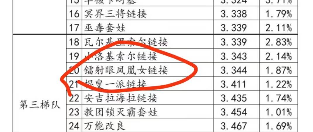 答:可以,先开镭射眼和凤凰女的链接,再开火人链接,其他金卡慢慢凑,比起其他套路来说,造价比较低廉。