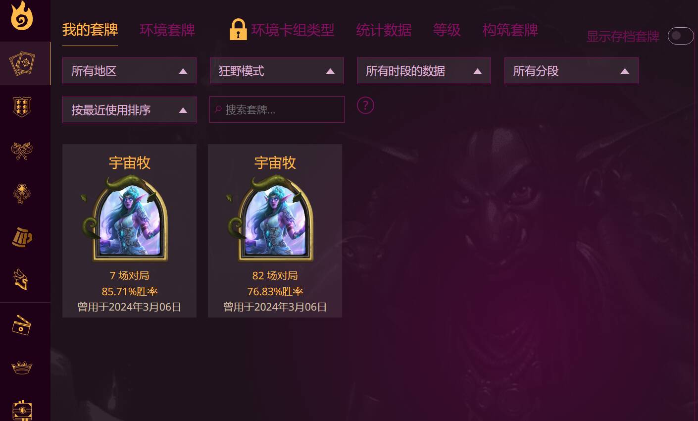 亚服狂野10星,全程用40宇宙暗牧上传说,综合胜率78%。没有绝对的劣势对局,快攻后期都能打。