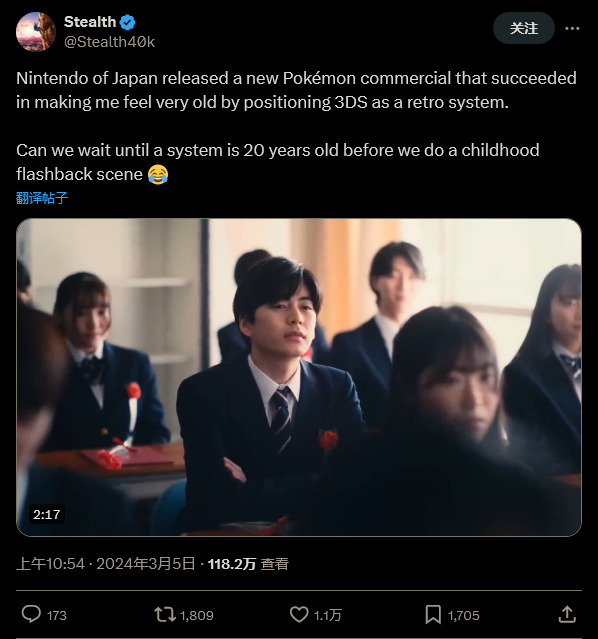虽然本意是为了引发许多人的怀旧之情,但这也引发了一些《宝可梦》粉丝的其他感受,他们认为将 3DS 视为“远古”的设备还有些太早了。在社交媒体上,名为 Stealth 的粉丝表示,这成功让他感觉到自己很老了:“难道我们不能等到(主机)系统 20 周年时再制作同年闪回画面吗?”