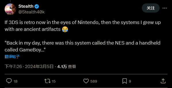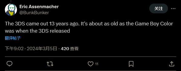 也有人指出,3DS 确实很老了,因为在 3DS 推出时 Game Boy Color 差不多也推出这么久了。而且 3DS 的前身 DS 主机现在也已经 20 年了。
