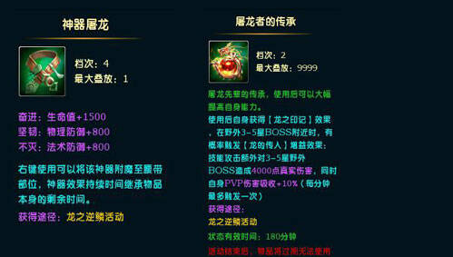 本次惊雷专属新服,还将送出新版年度重磅宝物——龙之逆鳞,概率增加防御、获得增伤效果、攻击时有概率对BOSS造成超高生命伤害,人人免费可领,让你在PK中从容调兵遣将,成为争霸沙场的大将军。龙之逆鳞专属效果:1、神器屠龙:+生命值1500、+物理防御800、+法术防御800,极大的增强了中小号的生存能力,让您战场PK不再脆皮;2、屠龙者的传承:使用后在3-5星BOSS附近,有概率触发“龙的传承”效果,在5秒内对野外BOSS增加额外4000点真实伤害、10%PVP群攻伤害吸收。弱势大陆、中小号将有更大触发概率,中小号也能逆风翻盘、称霸区服。