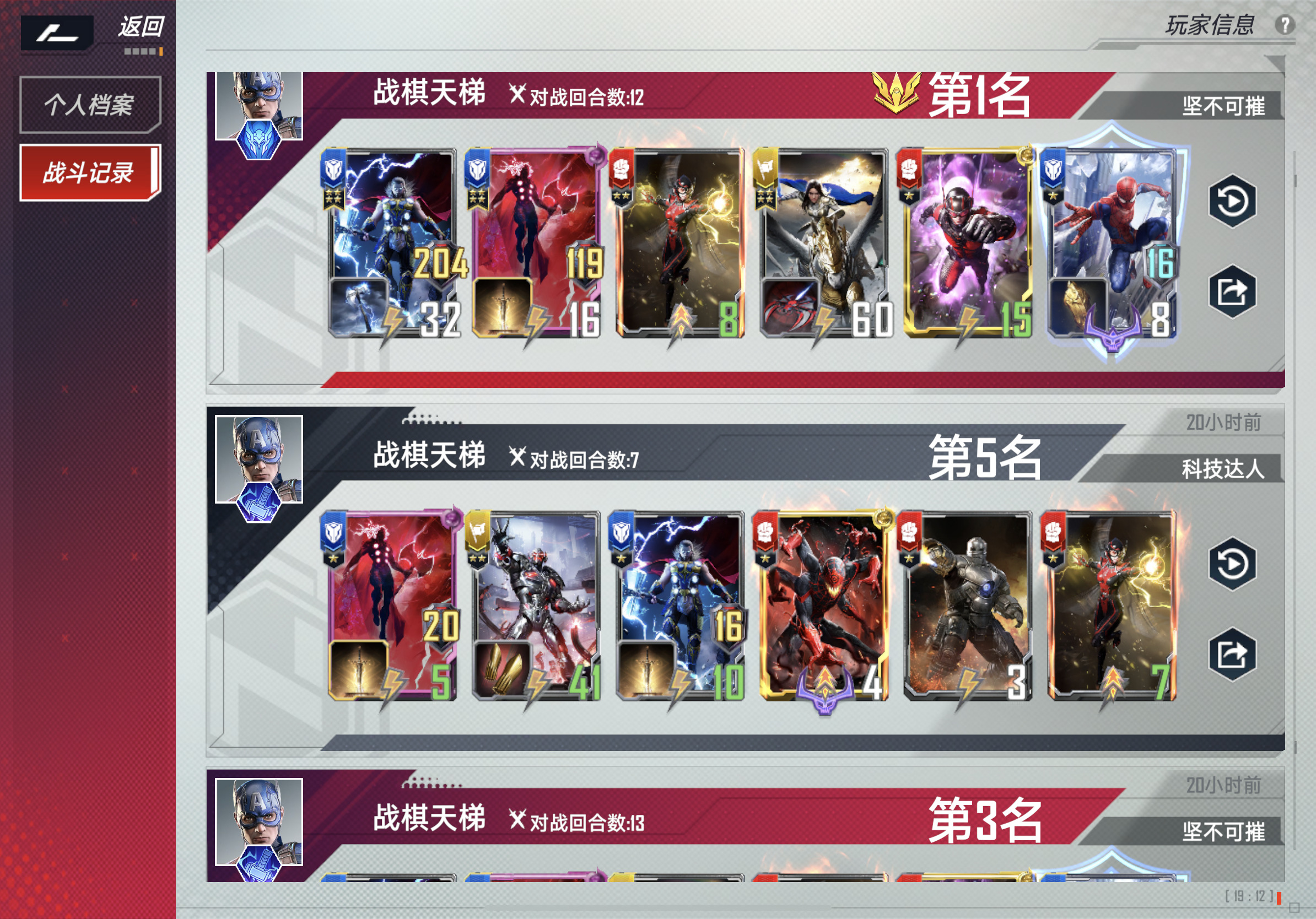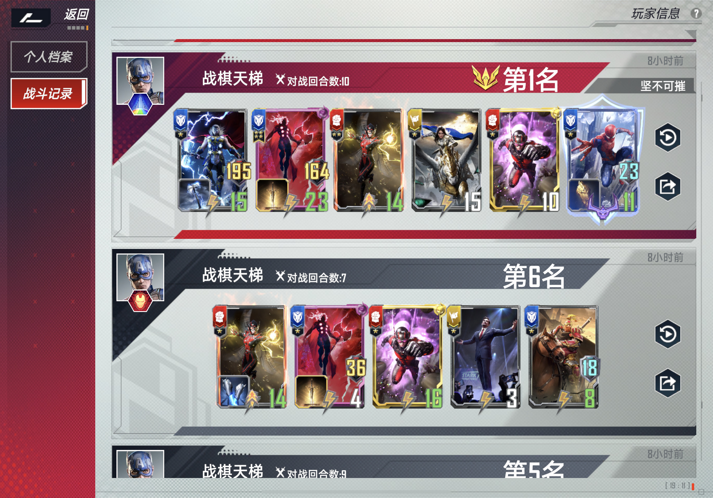大家好,我是天二,一个S3开服就一直在玩的老牌手了。本赛季用寡妇上王之后就有点无聊,偶然梦到抓了粉索咔咔砍人(真是做梦梦到的),就合计琢磨一套粉索的卡组。可惜当前赛季超模怪太多了,以往的粉索卡组普遍或者成型速度慢,或者赌博概率太大(比如赌红斗篷过度,前期厉害但是中期因为索尔来的太晚了后期乏力)。总之生存空间很低,我掉了两千多分,尝试了大佬们的各种粉索卡组,总是被虐。后来PK夺命的时候,想到可以用蚁人链接来拉战斗力,归纳融合了一套自认为还算强力的卡组。经过多次测试,我认为此套卡组的成型速度适中,成型难度适中,虽然因为速五本没带假面夫人,但是缩小和加血都拉满了,所以也算半套血魔了,生存压力小了很多。