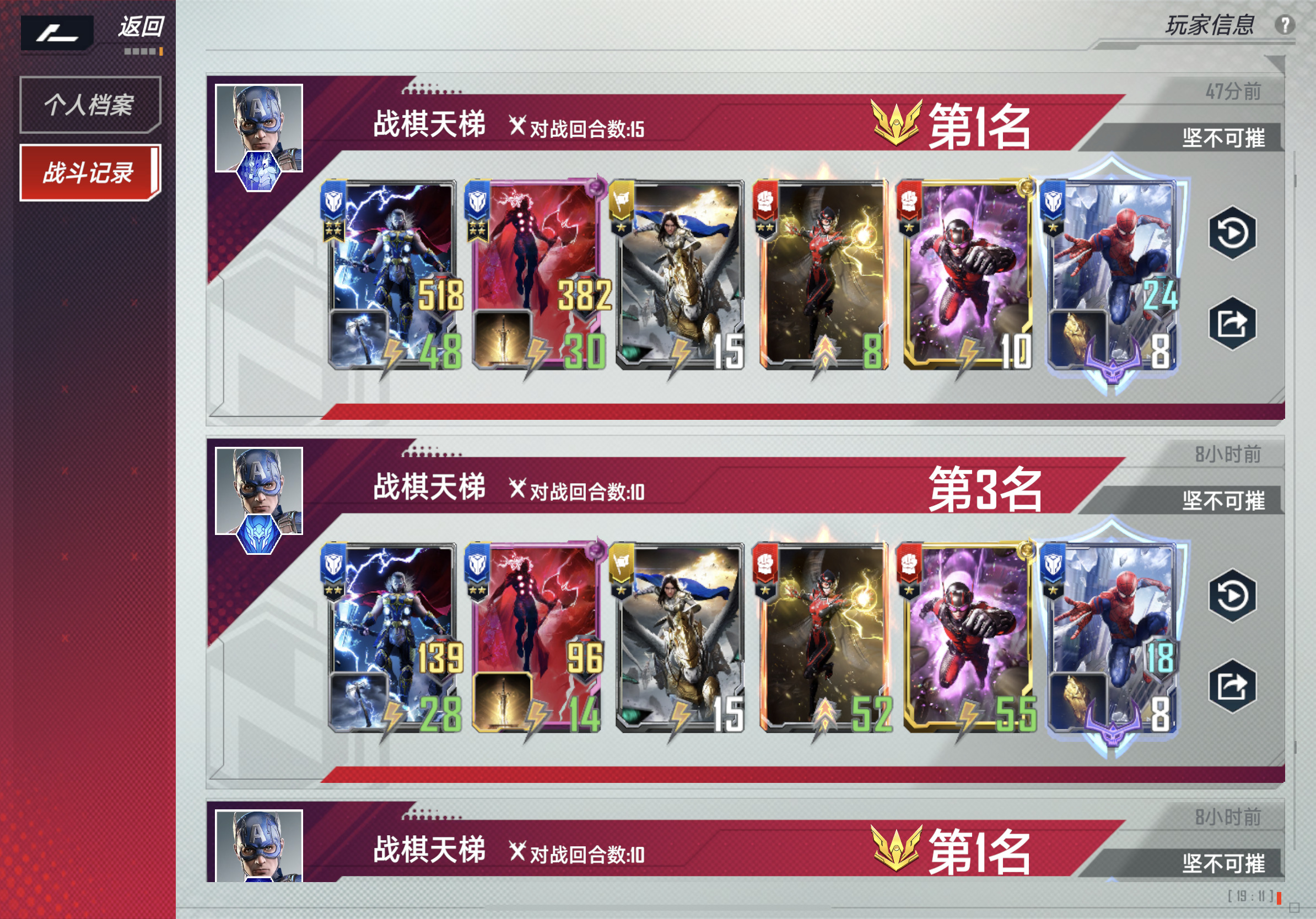 T2.索尔剩下俩技能一费D牌和四败,四败触发艰难,但是有奇效。钢铁侠五费D牌技能(有时候俩索尔加蚁人都有了,一回合暴富,有时候啥也没有,这个时候有一张扭曲比较好)。蜘蛛侠的蜘蛛飞袭,赌狗,可以锁一回合到两回合的血,用处不是很大。其他不选。