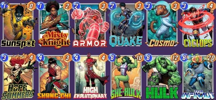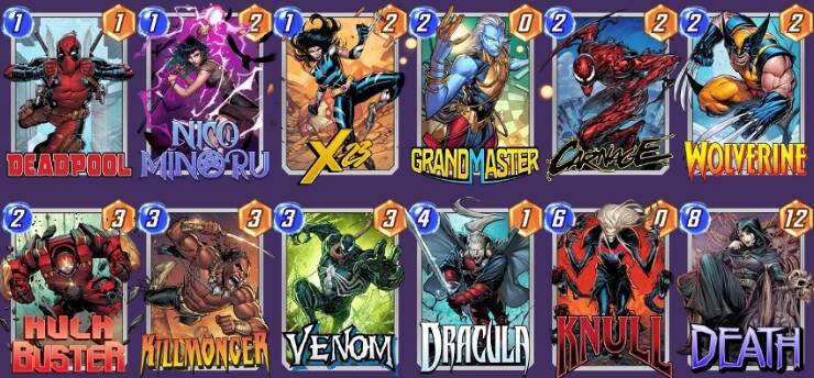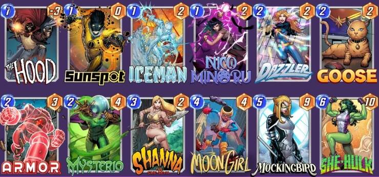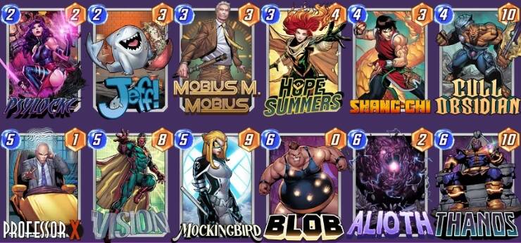 【海拉】的猖獗导致【X教授】重回了不少控制卡组的视野,得到【仿声鸟】加持的【灭霸】分得第一杯羹。只要起手有【心灵宝石】,便能在三回合无脑拍下9点战力,这放到哪套卡组面前都是令人绝望的(包括【灭霸】内战),这就使得提前用【X教授】锁定战局变得顺理成章。恐怕削弱已经在路上了,大家且玩且珍惜。