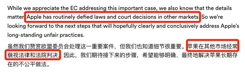 在这次苹果在官网的公告里,就直指Spotify 是欧盟委员会的 “ 帮凶 ” 。