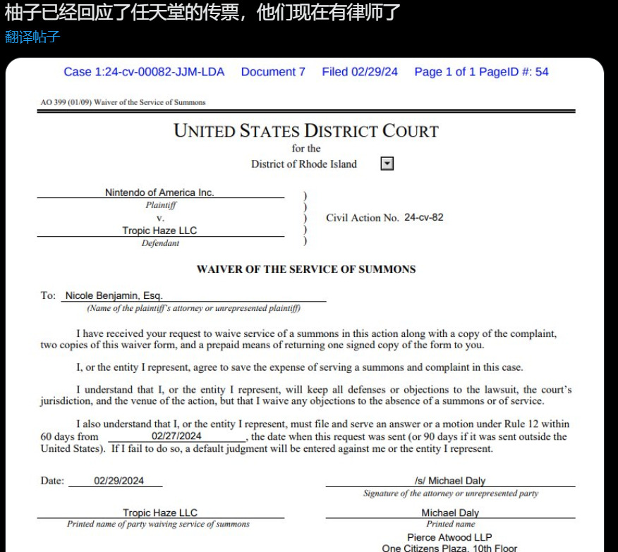 2月26日,任天堂美国分公司在周一起了个大早把一份40页的诉状交到了地方法院,被告方是“热带阴霾”(Tropic Haze)也就是Yuzu模拟器的开发团队公司名,任天堂起诉理由有很多。