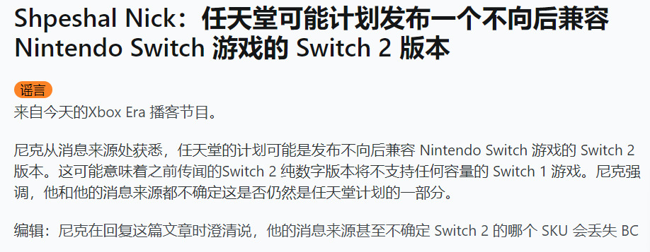 而在任天堂这边,NS2的消息一直在出现,却始终没有板上钉钉,也是因为传闻NS2和现在的1代可能是相通的。