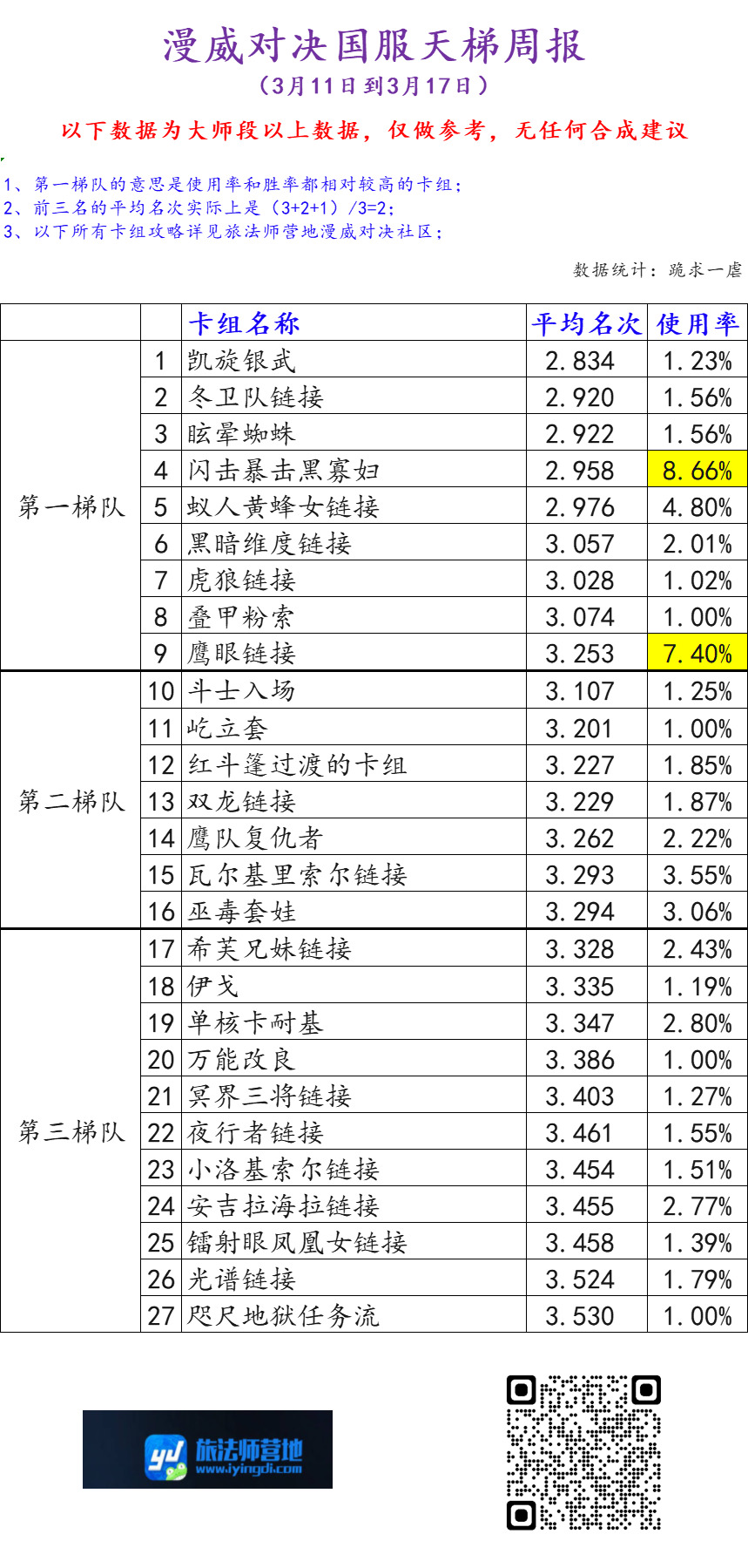 本周报数据仅做参考,本文不做任何卡组推荐、合成: