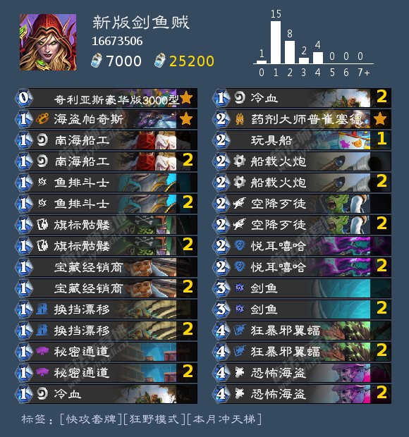 根据新版本新卡对剑鱼贼构筑进行了部分调整,过牌能力和补资源能力有了一定的增强。欢迎大佬们加入讨论提出建议~