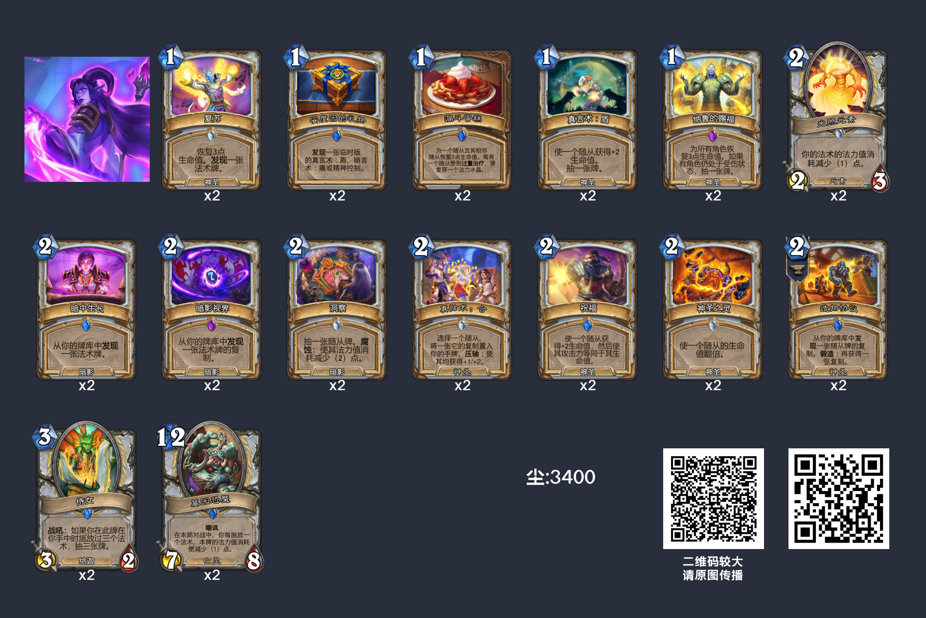 来自蜗壳数分bs的奇迹牧(外带心火体系),它使用这套卡组拿下了美服首杀。