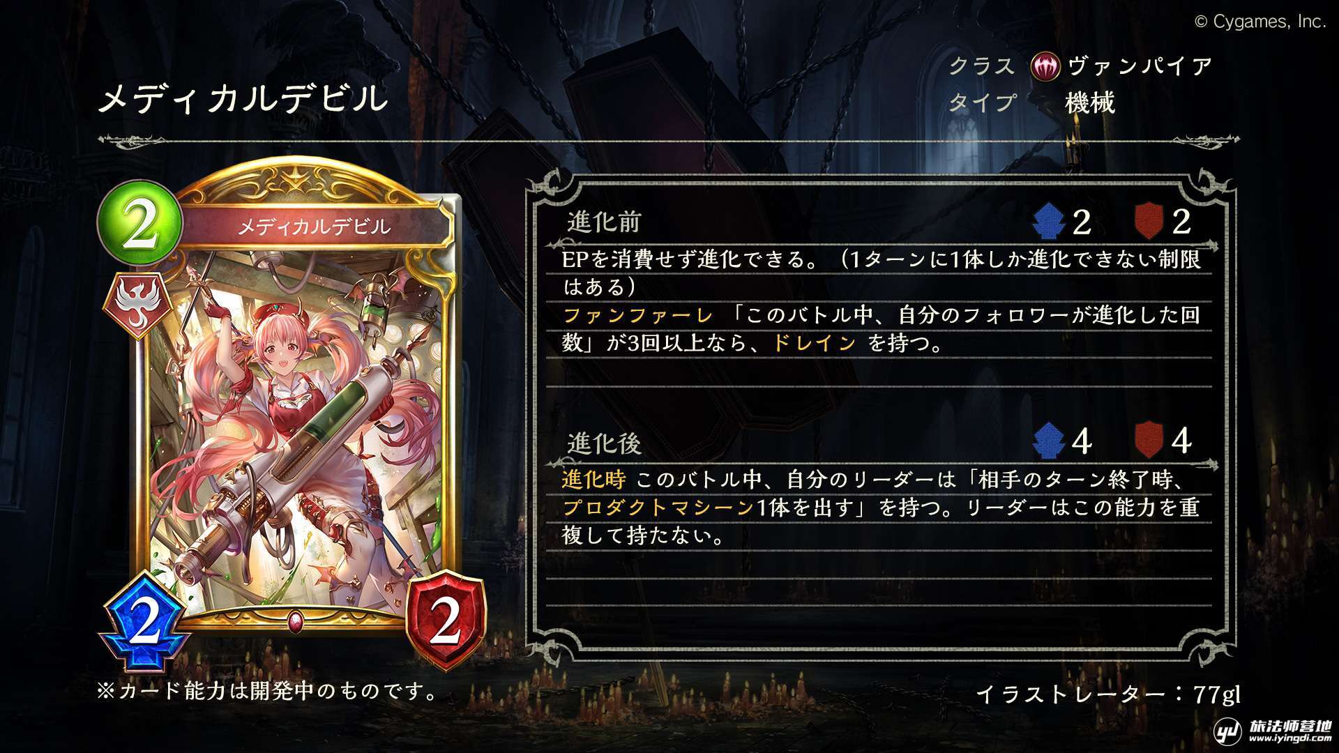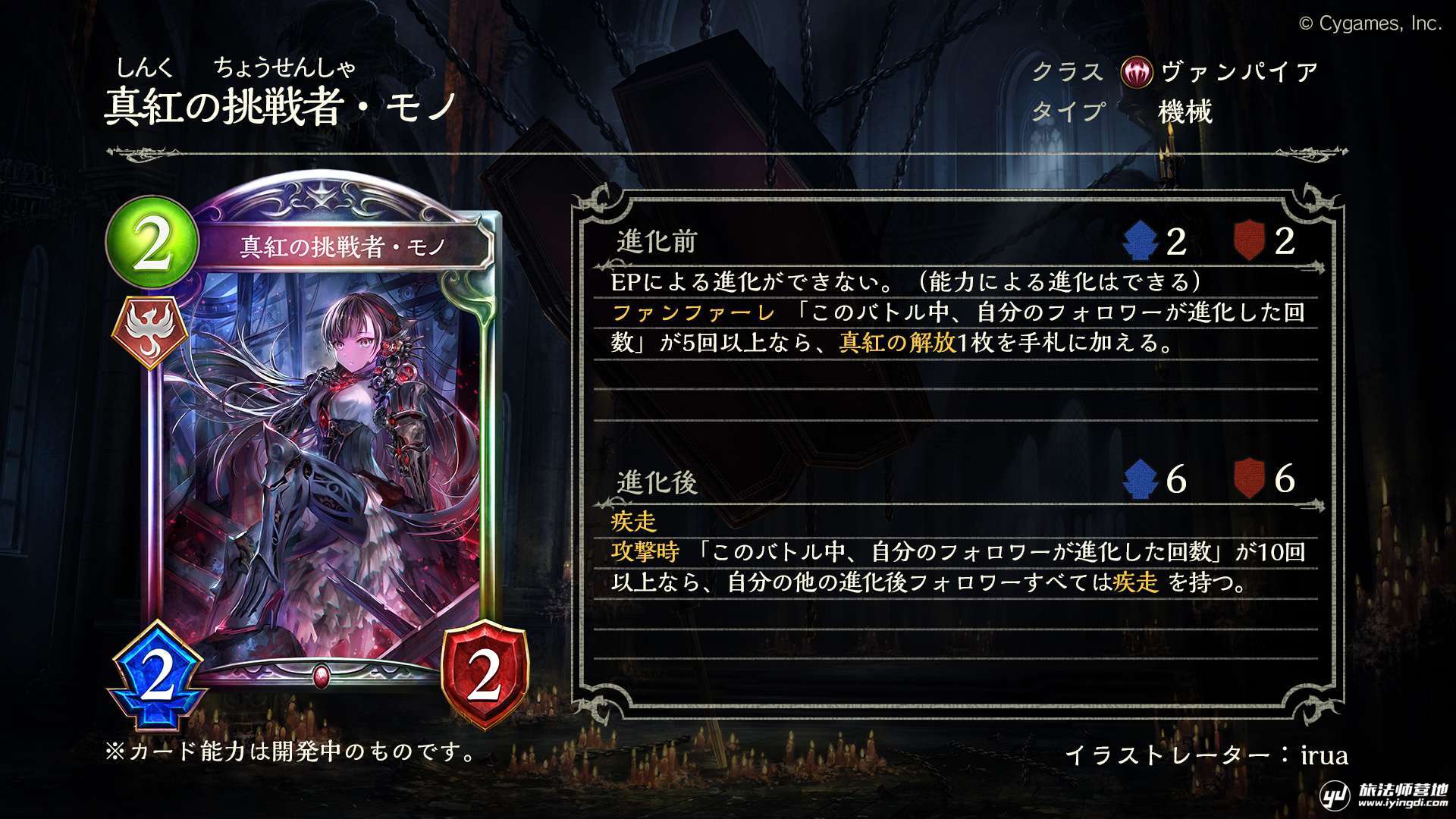 攻击时 如果「这场对战中,自己的随从进化的次数」为10次以上,则会给予自己的其他进化后的随从全体疾驰效果。