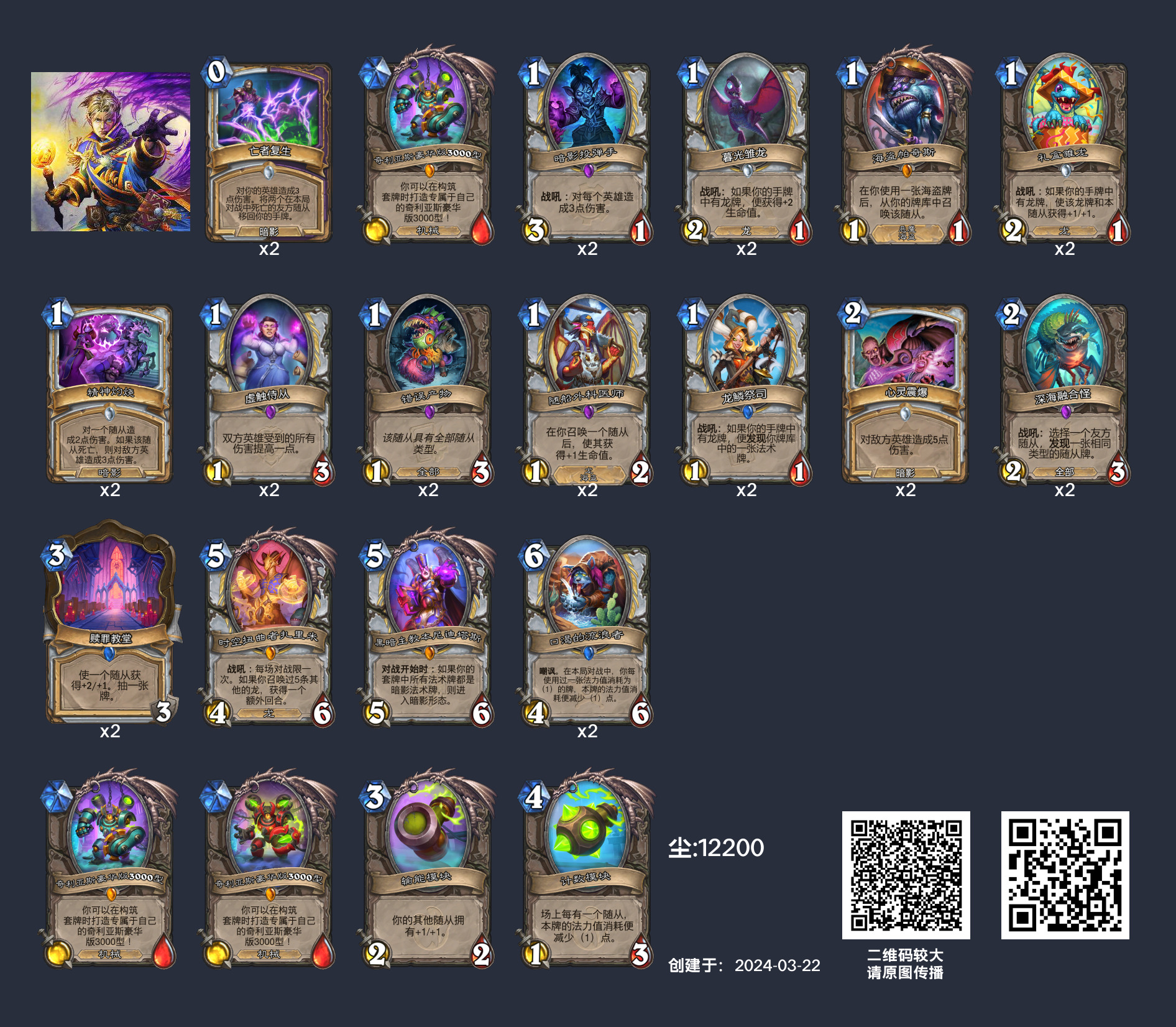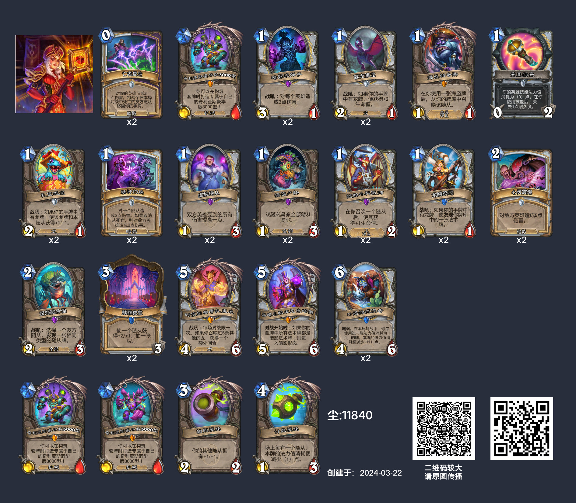 对于龙体系:其实有一点私心在里面,我一直很喜欢牧师的龙体系,恰逢该版本给到了开门龙这一强大的龙体系终端,我立即将其融入宇宙牧的构筑中进行尝试,实测表现不错。
