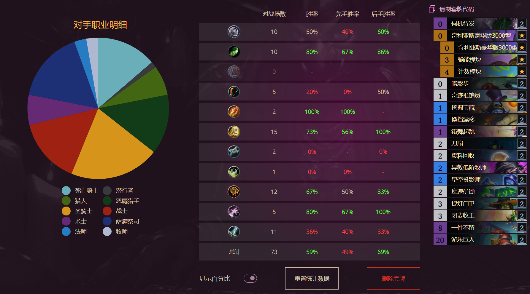 新版本上线已经几天了,天梯环境慢慢稳定了下来,目前最热门的职业无疑是骑士,大量的buff和回血能力,对盗贼这种需要打节奏抢血的职业来说是有很强的压制力的。