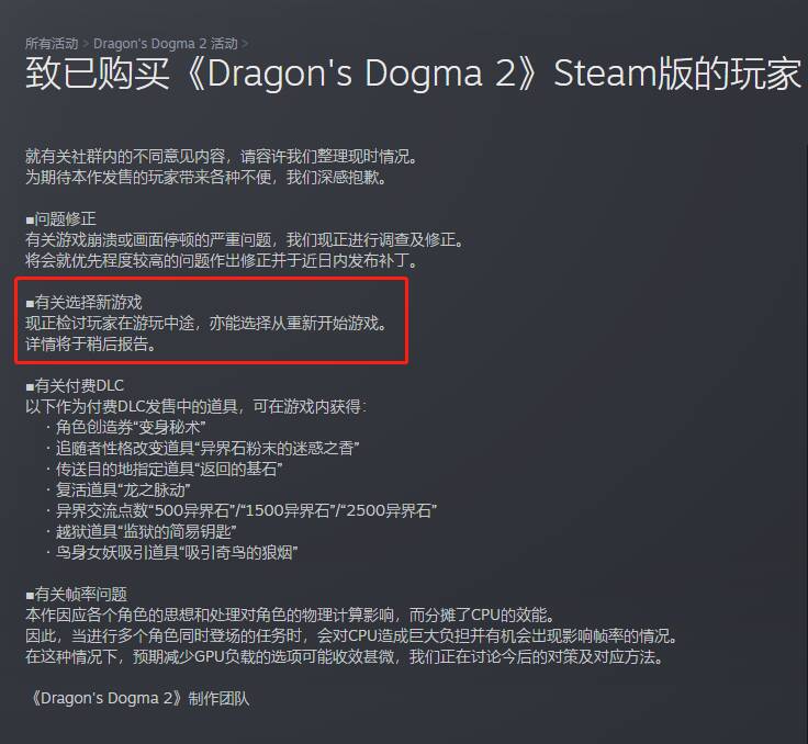 备受期待的卡普空动作RPG游戏《龙之信条2》在发售后因为优化等问题遭到了玩家的口诛笔伐,其Steam平台上目前3万多条评价也维持在褒贬不一的总评(51%好评)。