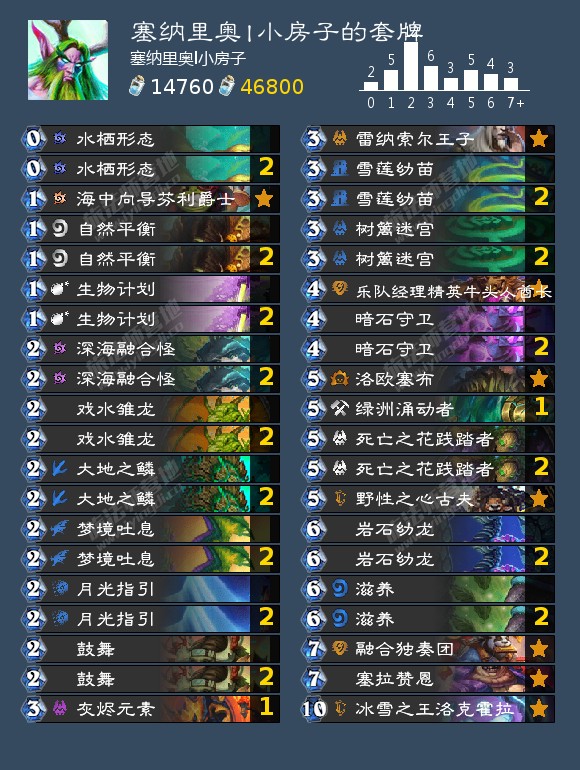 打快攻很好用的一套卡组,如果你的环境快攻比较多,又只有德鲁伊卡比较全,可以试试这套 - 接下来是目前德鲁伊的一个奇迹卡组,巴内斯拉加基森的强度五费秒人不用太管打牌顺序的强度不必多说至于我把把两个加基森都上手就不提了(凭什么这么强的卡组和我有仇一样啊,破防了)