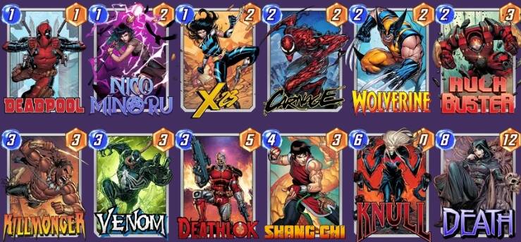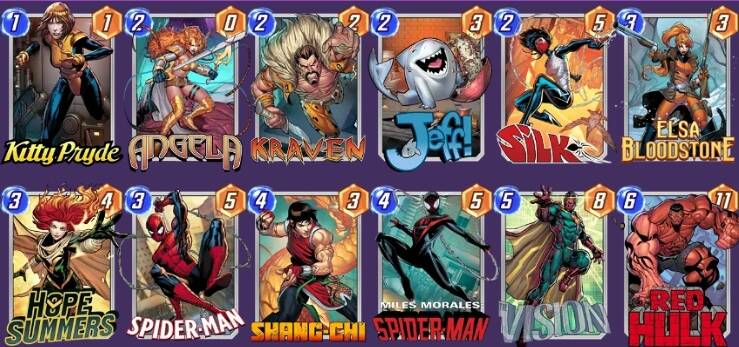 一众组合技卡组中点数最小的套牌——你问我怎么赢?只要对手比你更小就行!这副卡组能够狠狠惩罚【灭霸】和所有铺场思路,牌下得越多越接近投降。只是现在有不是玩家会带上【卢克·凯奇】和【超级斯克鲁人】来防范,快乐程度有所削减。