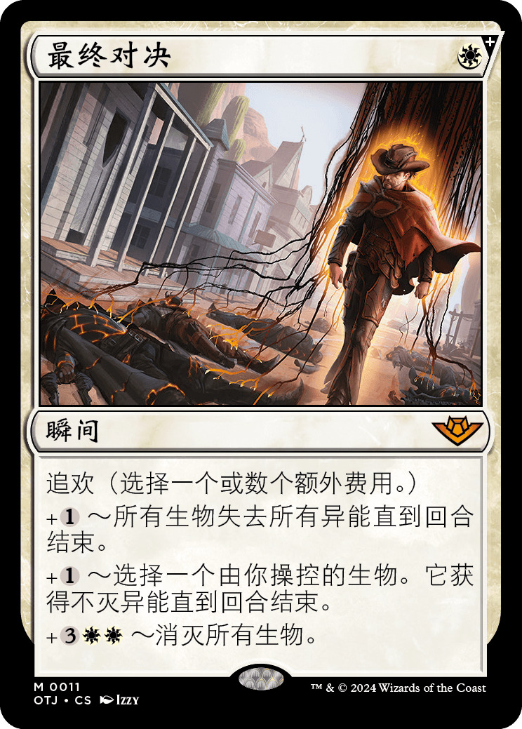 追欢牌张的牌框略有变化,其法术力费用的位置上会包括一个加号标志~不过这仅起提示之用,并没有实际规则含义。请记住,无论你选择了哪些模式,支付了哪些额外费用,具追欢之咒语的法术力值都仅根据其法术力费用来确定。举例来说,最终对决的法术力值始终是1,就算你选择了全部三项模式也是一样。