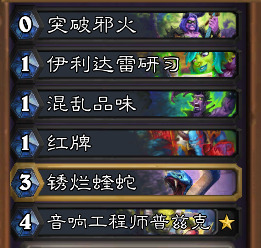 术士:大家都觉得术士依靠优质的解牌很能扛得住猎人和圣骑,但我遇到的情况是,4费的契约一旦被解掉,术士就会面临很大压力,而我们6-5大多数情况时先拍下去的,因此很少存在解不掉的情况,打脸冲就完事了!