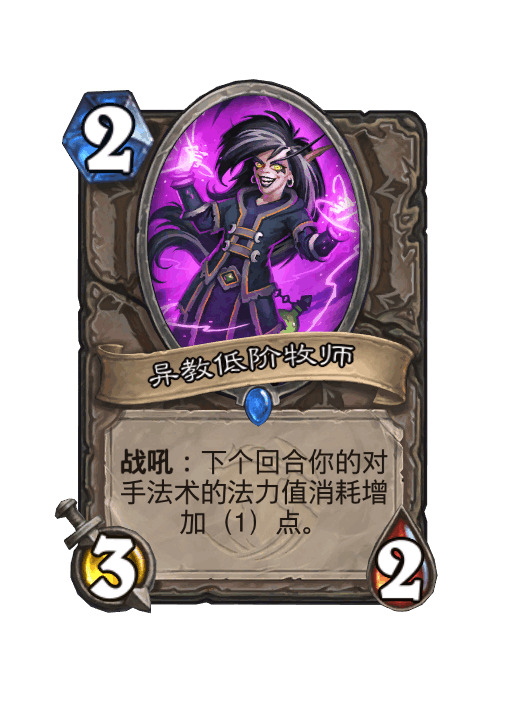 环境针对卡选择的是脏鼠和异教低阶牧师(小塞布是不是说这张?),正常打这个卡组完全打不过法强萨,但有了这两张可以说抽到就能赢,后面会细说各职业打法。小塞布主要是压法强萨爆发,后面发现还可以压术士的4费手牌恶魔,面对猎人时也能稍微降低对方的展开速度。脏鼠用的好可以几乎克制所有职业,脏鼠接乱斗,脏鼠接雷诺也是非常赚的打法。而许多人建议的带蛇软我试过之后并没什么效果,骑士掏刀的那一回合已经+1+1了,与其三费拆掉那把刀,不如早点拉个随从下来让它吃不到buff挖不到宝。术士的回血刀我们也不怕,对面敢解我们的假人他的刀会被瞬间射爆。