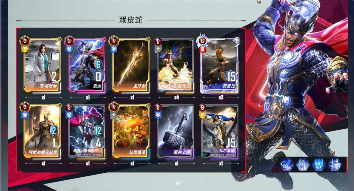 后期就是每回合万岁+时间宝石刷决死反击回血或者刷功能牌比如轰炸(5个轰炸就够)响指、光束、夜巡这种。打不同卡组有不同应对方式。打巫毒套娃什么都不用就夜巡姆巴库就行。剩下的有多个轰炸跟突击神盾局去解决就行,如果套异界蜘蛛咱们全是黄卡带九头蛇炸弹,注意是5费的九头蛇炸弹,不是6费致狂炸弹,这样就不会被弹回手就是乱打了,其他卡组就是光束解决,DOOM博士在突击神盾局的情况是出不来的。这些都是老张的经验(我自己实战还没玩到这程度)也欢迎各位小伙伴在评论区补充各种卡组打法。