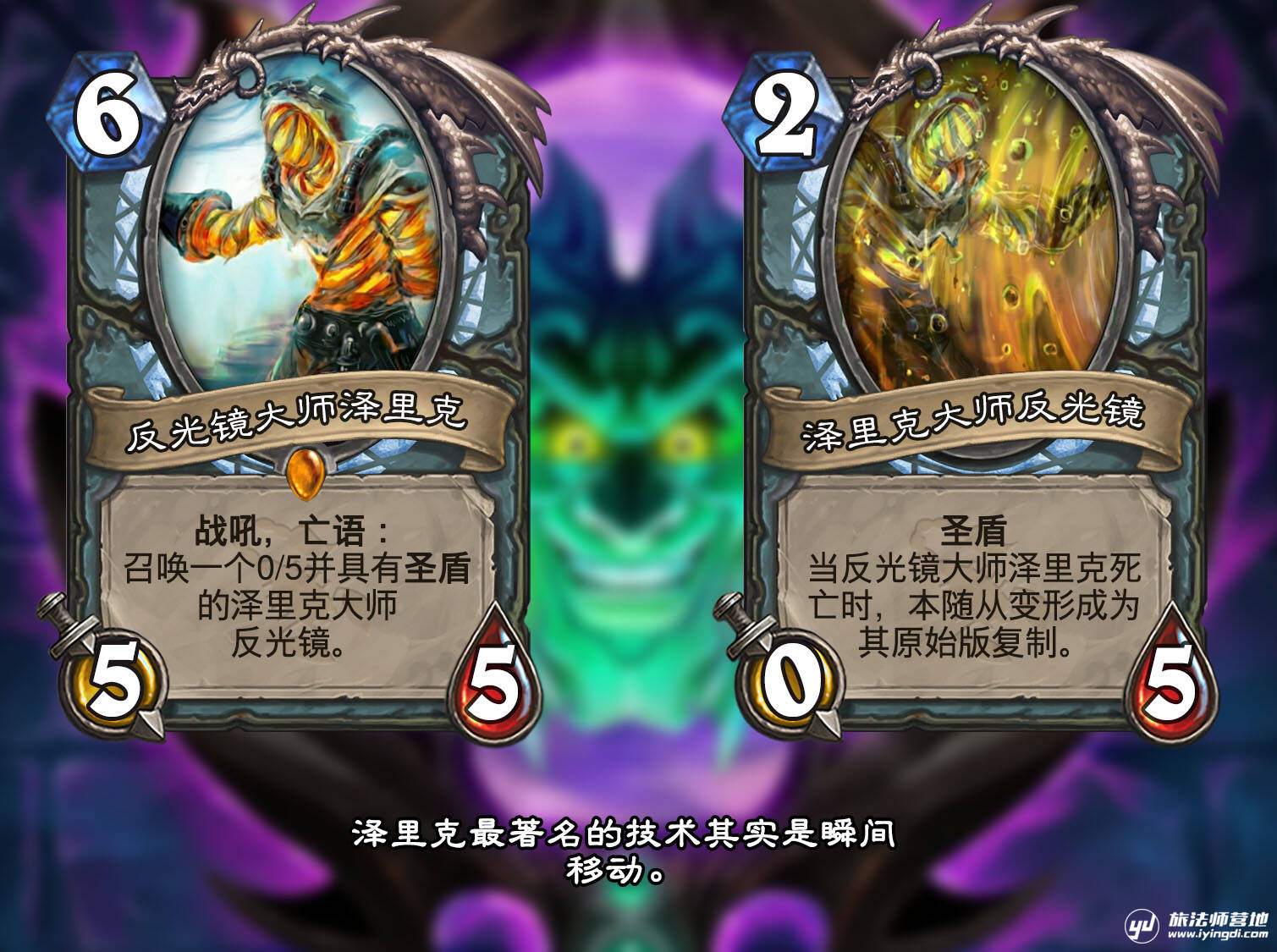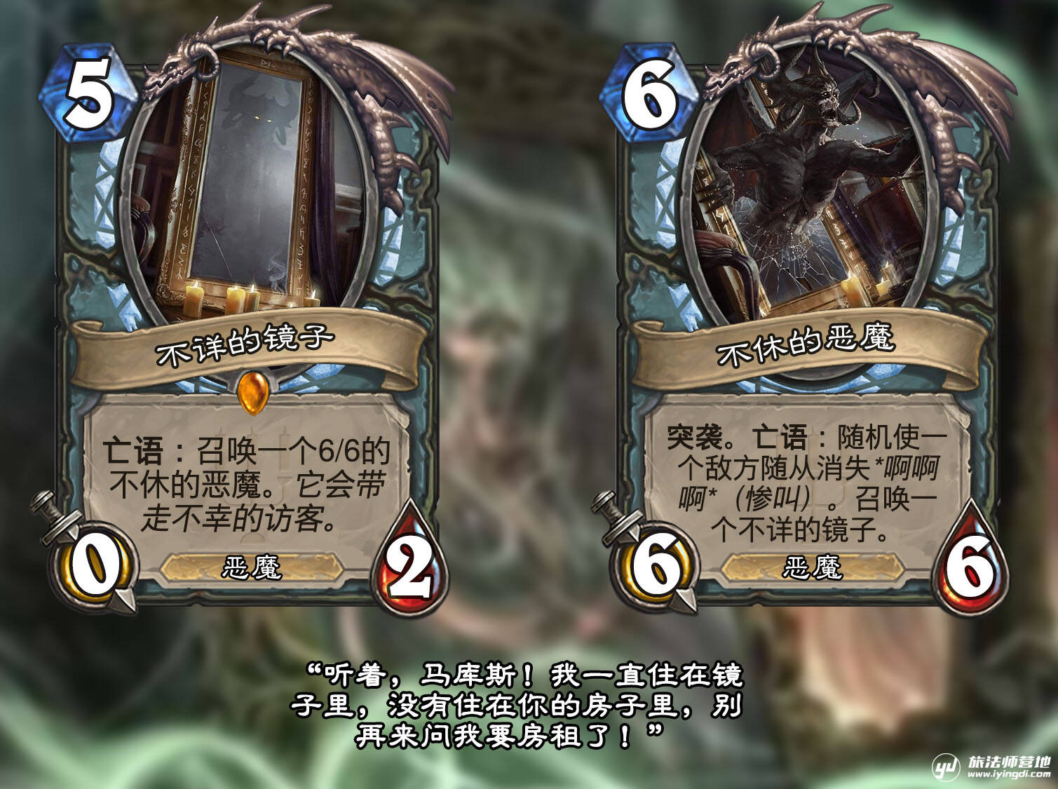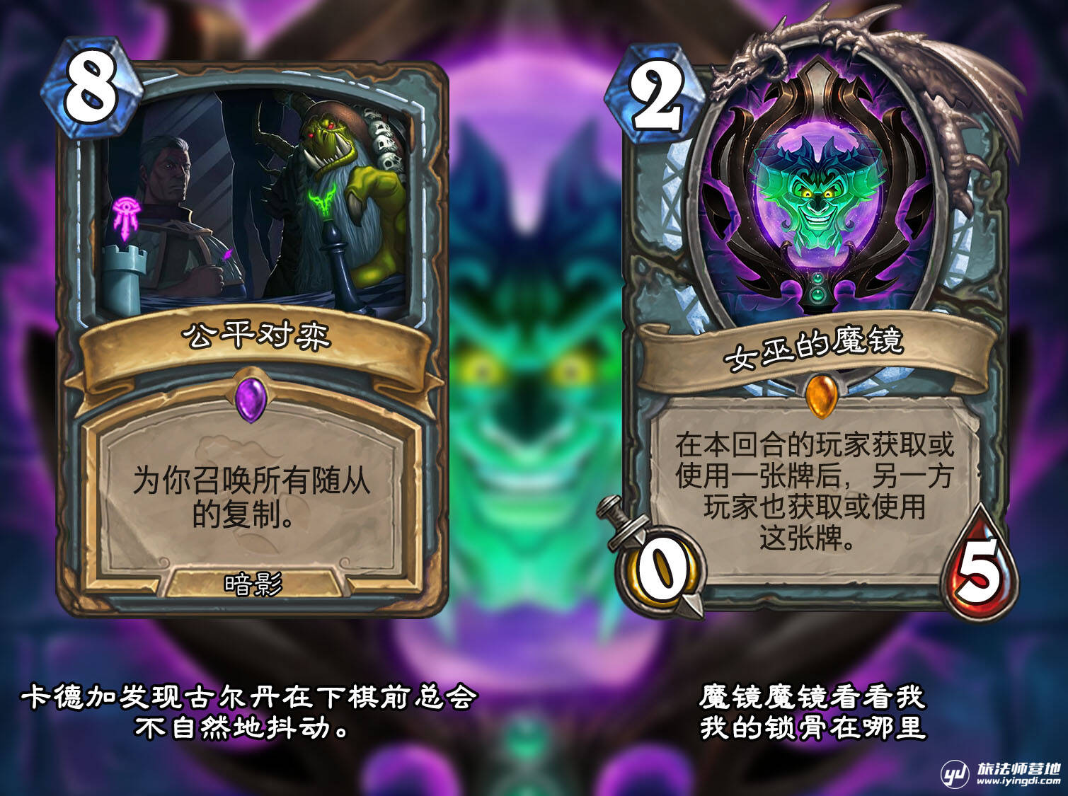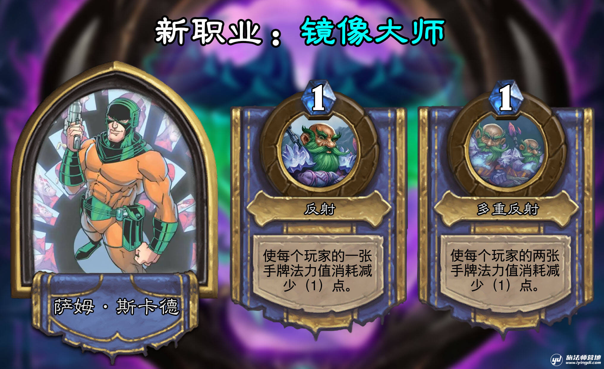 复制你对手的一切,指:你的职业、英雄、英雄技能、手牌、牌库、战场、头像区的任务奥秘等、玩家ID(仅限本局)都会变为你对手的复制。