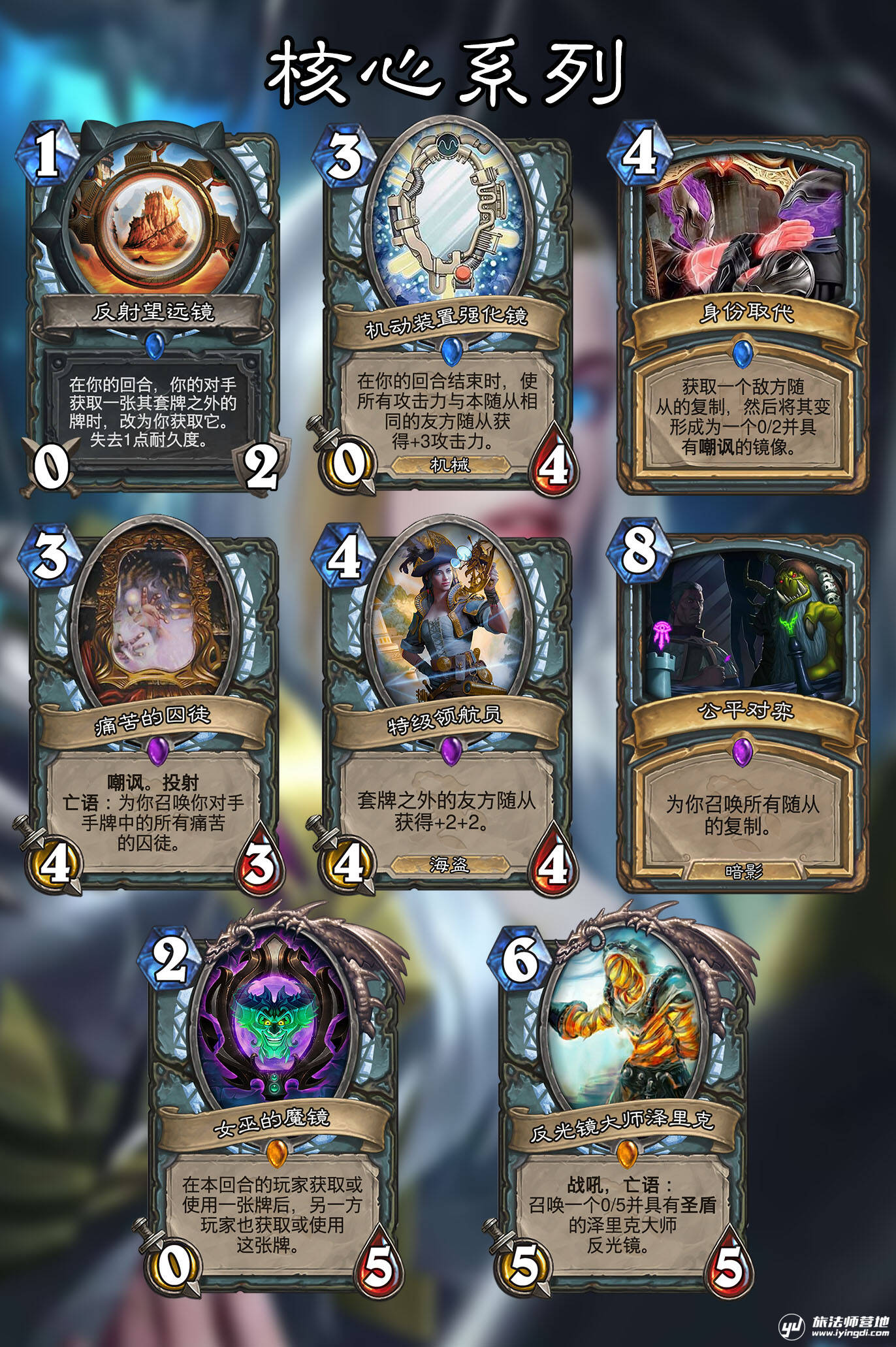 于是在今年以本次【皇家庆典】为契机,转变镜像大师的设计理念,用三个拓展包展现了至少六种具有独特风格的体系,但仍保留了“复制”作为职业核心基底。最终的完成版我个人认为算是一份令我满意的答卷。(在《奎尔萨拉斯的秘密动物园》拓展包后面也作出过预告)