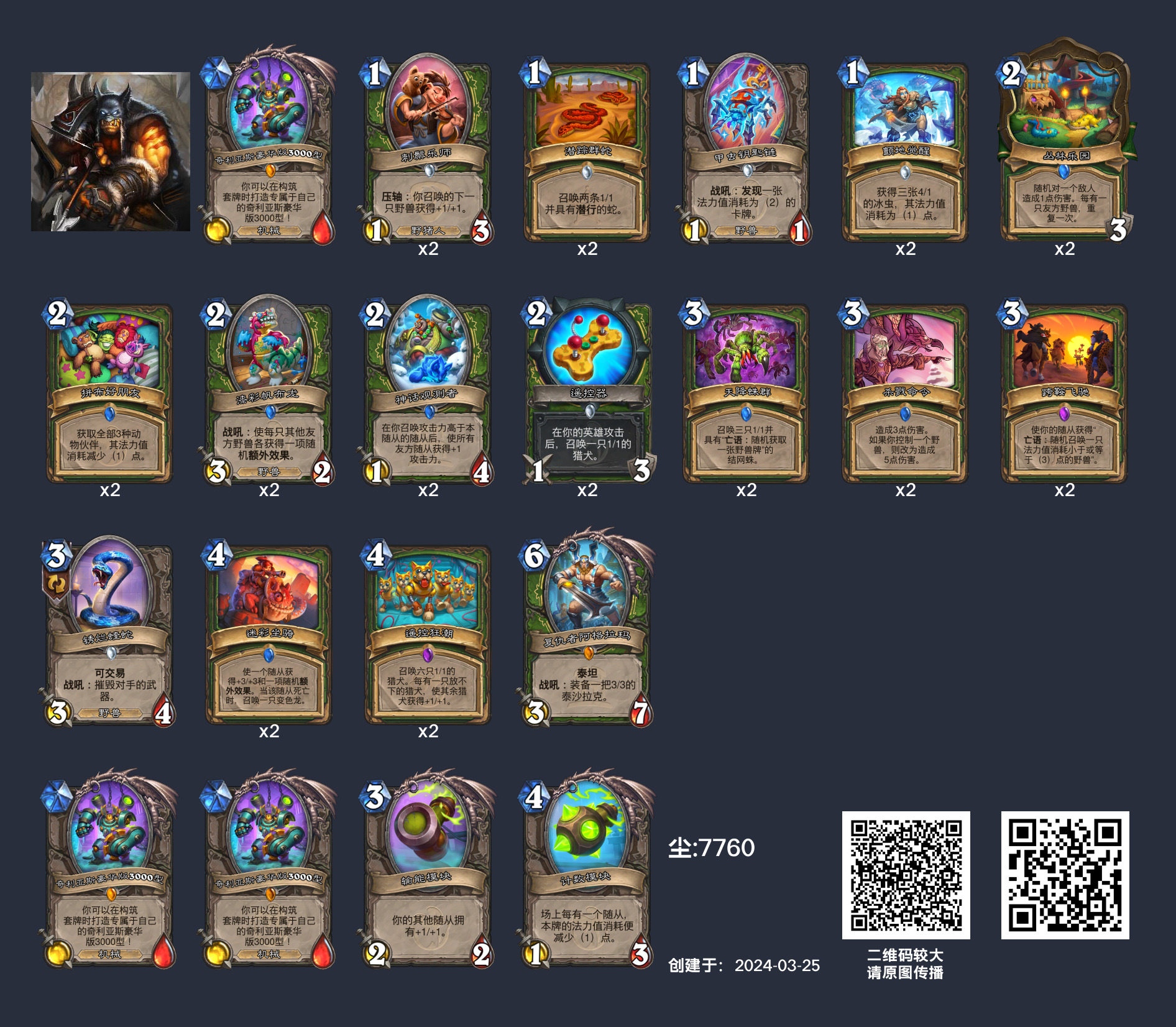 他最近使用的卡组,打到欧服第5