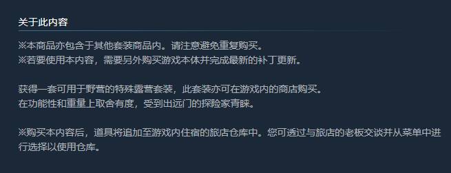值得注意的是,《龙之信条2》官方豪华版中包含的“探险家的全套野营用具”,以及单独售卖的DLC中都没有提到此道具可以无限使用,评论区甚至还有玩家以为这是一次性物品。