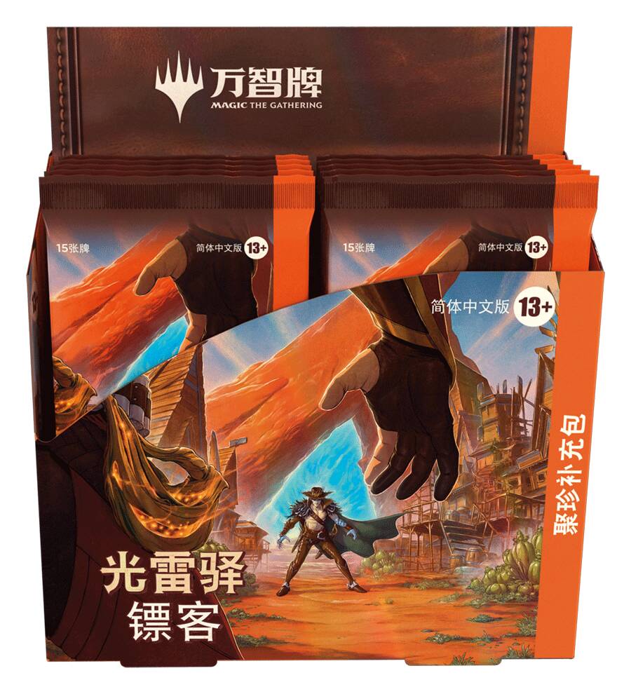相比卡洛夫庄园谋杀案常规补充包,牌手们会有更大的概率从光雷驿镖客常规补充包中获得出自精选列表的牌张。每5包常规补充包中,会有1包内含一张出自精选列表的牌张。OTJ的精选列表共有40张牌,其中30张出自满载而归,还有10张为特别登场(SPG)牌。特别登场牌均为重印牌,带有光雷驿镖客风格的全新插画,其中不少头顶漂亮的帽子。每64包常规补充包中,会有1包内含一张不闪的特别登场牌。传统闪的特别登场牌则能从聚珍补充包中开出。