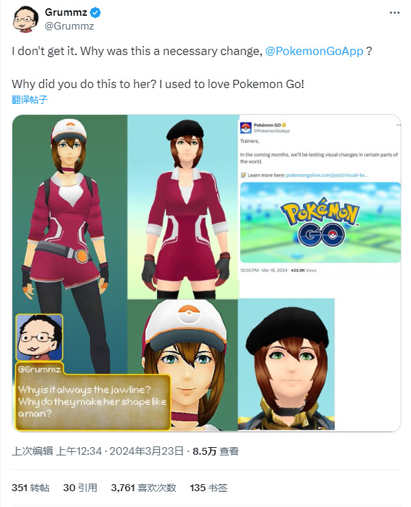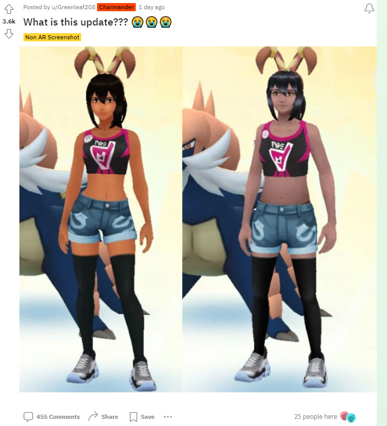 乍听起来似乎是功能更加全面的改动,但Niantic却对角色形象下手,使得角色形象看起来更加符合“正确”标准,不少玩家对此感到愤怒但又无可奈何,因为玩家此前的人物形象也随着本次更新被强制改变。