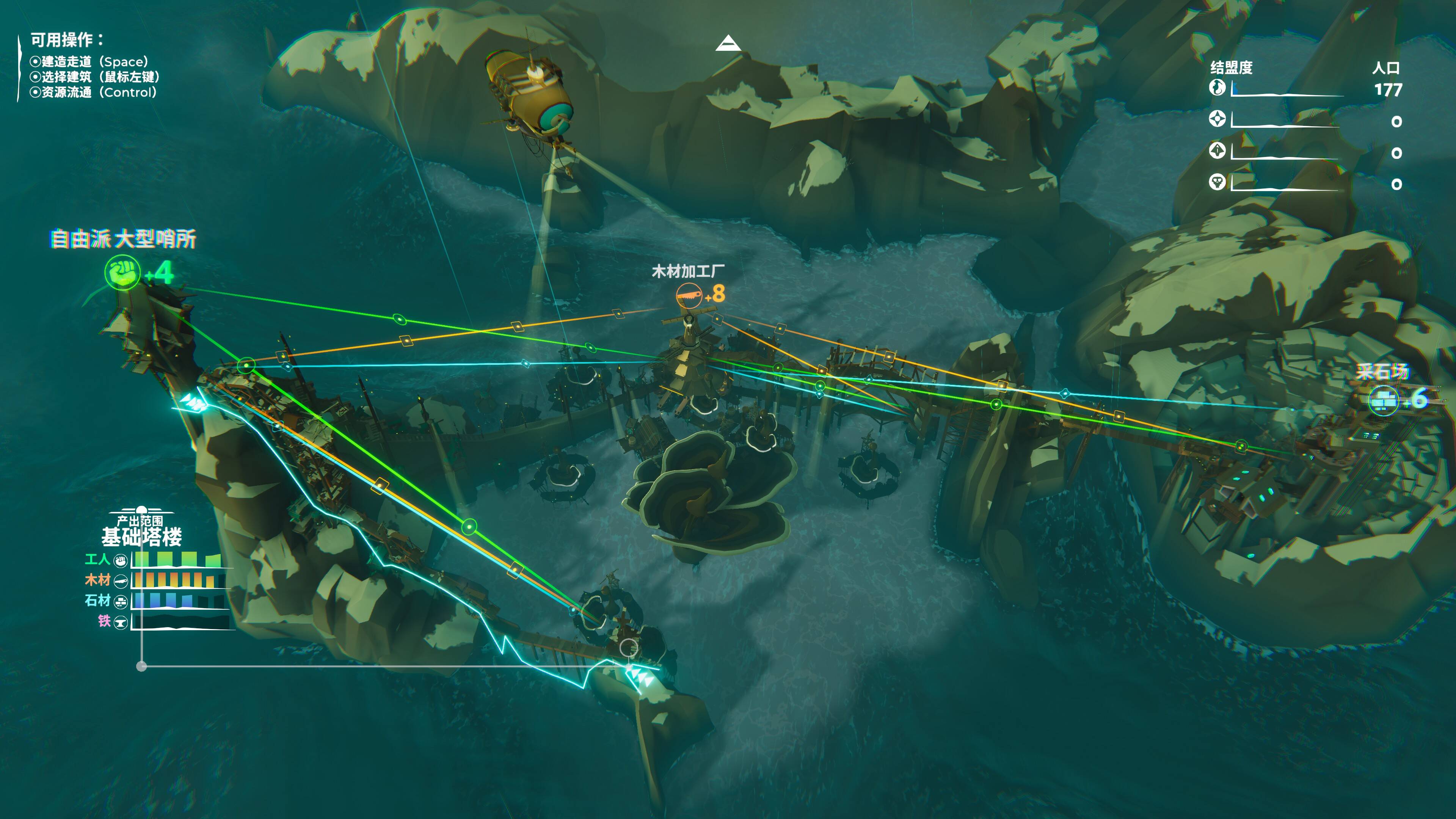 从寻找资源到建造、升级,再到管理定居点,你将体验到一种偏向造景的游玩体验,尽情享受着在海平面上建造城镇的壮阔感和操控飞艇在天空中翱翔的自由感。