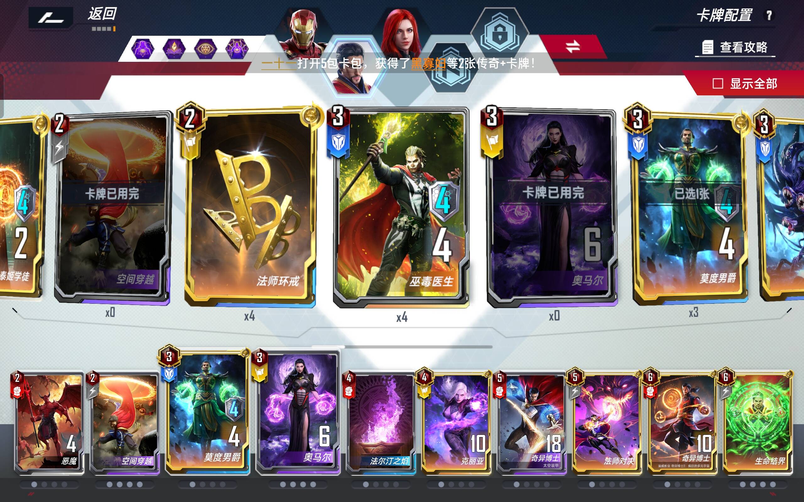 5费:太空博士可以配合0费秘闻波进行免费刷新,4本凑够声波上5本可以用一下,去找铁人的事件和托尼,钱不够速6本容易走远。法师终幕也是凑数的。